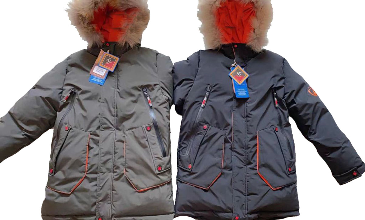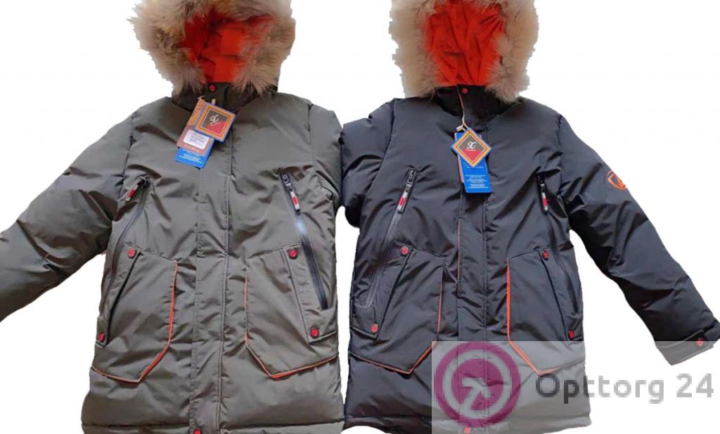 Куртка зимняя детская с натуральным мехом для мальчика с принтом оптом