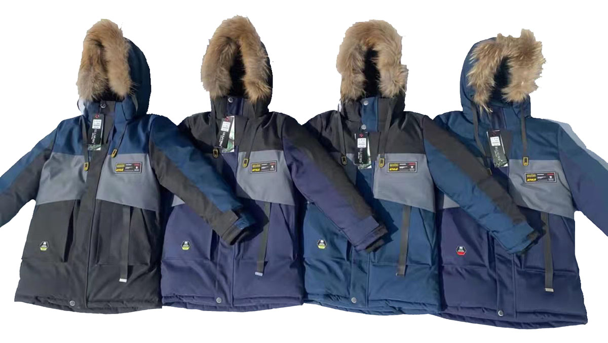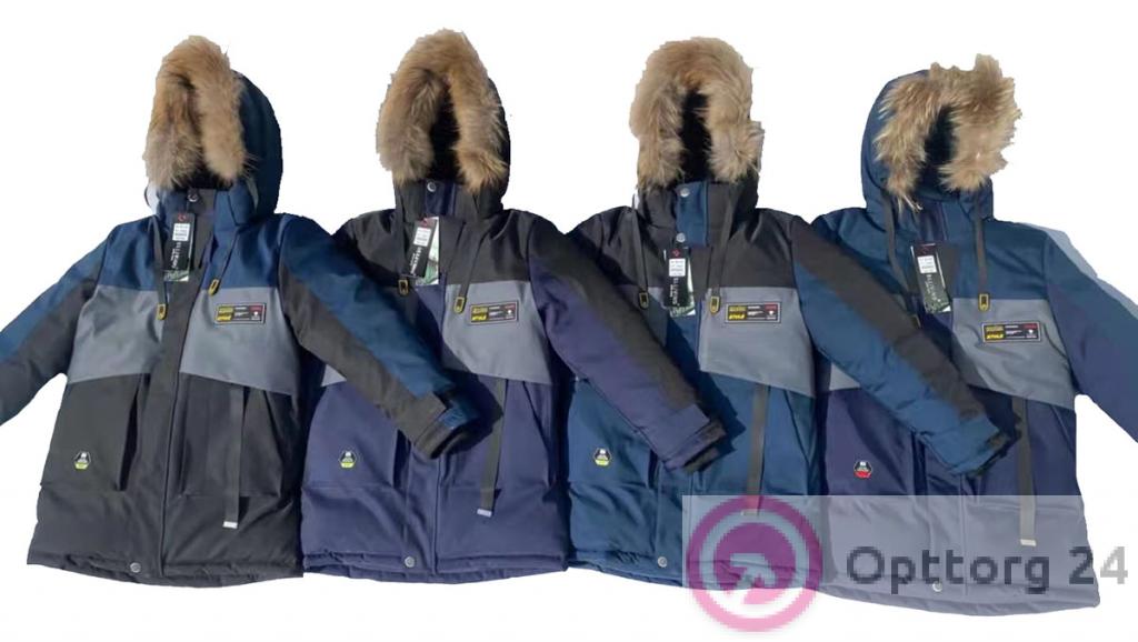 Куртка зимняя детская с натуральным мехом для мальчика с вставками оптом