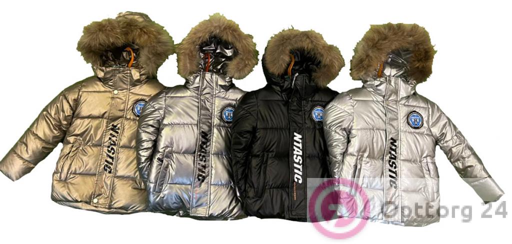Куртка зимняя детская с натуральным мехом однотонная оптом