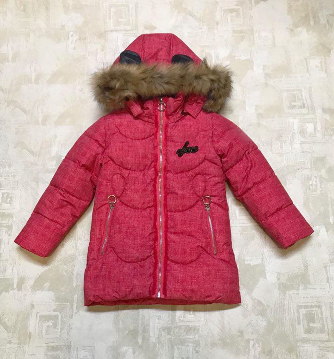 Описание: Куртка зимняя для девочки цвет коралловый. Застегивается на молнии. Высокий воротник. Капюшон декорирован искусственным мехом. Есть два кармана на молнии.