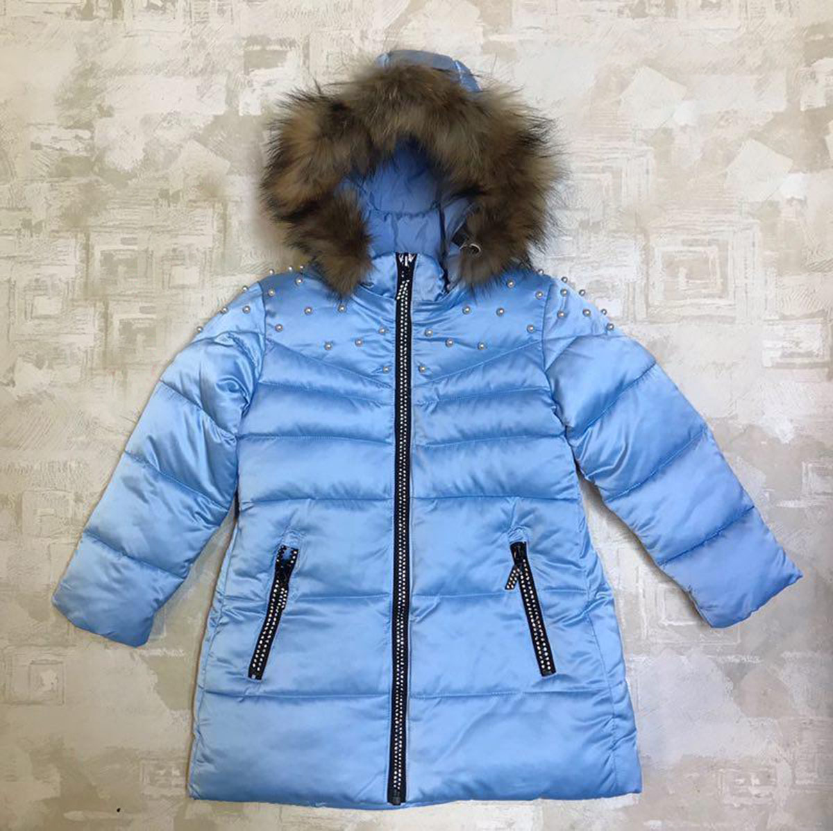 Описание: Куртка зимняя для девочки цвет нежно-голубой. Застегивается на молнии. Высокий воротник. Капюшон декорирован искусственным мехом. Есть два кармана на молнии.