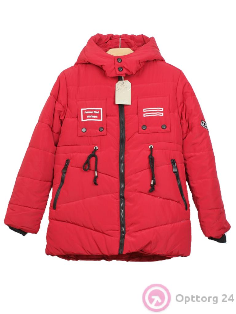 Куртка зимняя на холофайбере для мальчика подростка яркая красная оптом