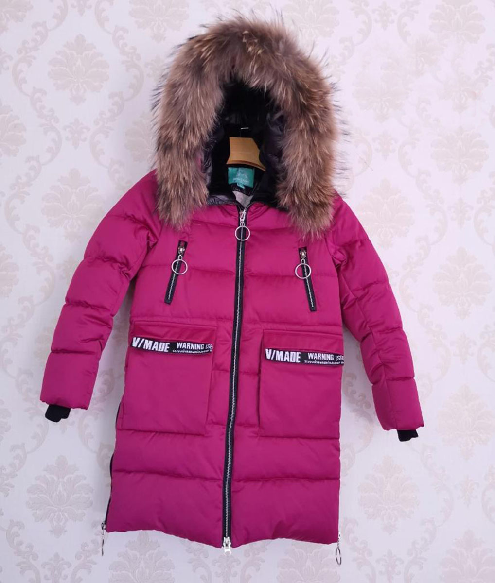 Описание: Куртка зимняя подростковая с натуральным мехом для девочки, малинового цвета. Высокий воротник. Манжеты рукавов дополнительно с трикотажной резинкой. Застегивается на молнии. Есть два больших накладных кармана. Капюшон декорирован натуральным мехом и шнурком.