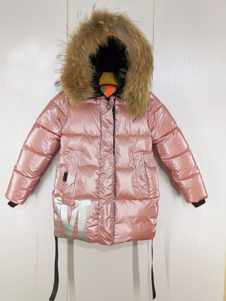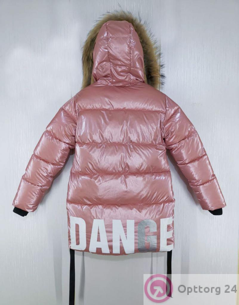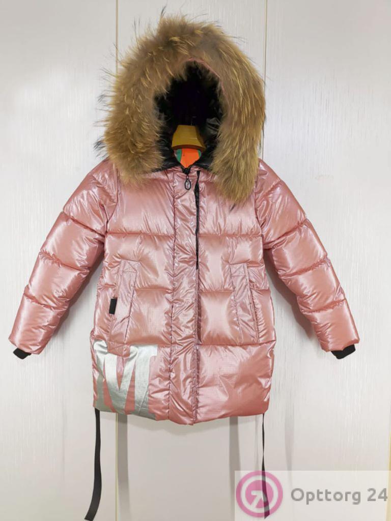 Куртка зимняя подростковая с натуральным мехом для девочки цвет перламутровый оптом