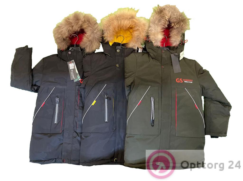 Куртка зимняя подростковая с натуральным мехом для мальчика с капюшоном оптом