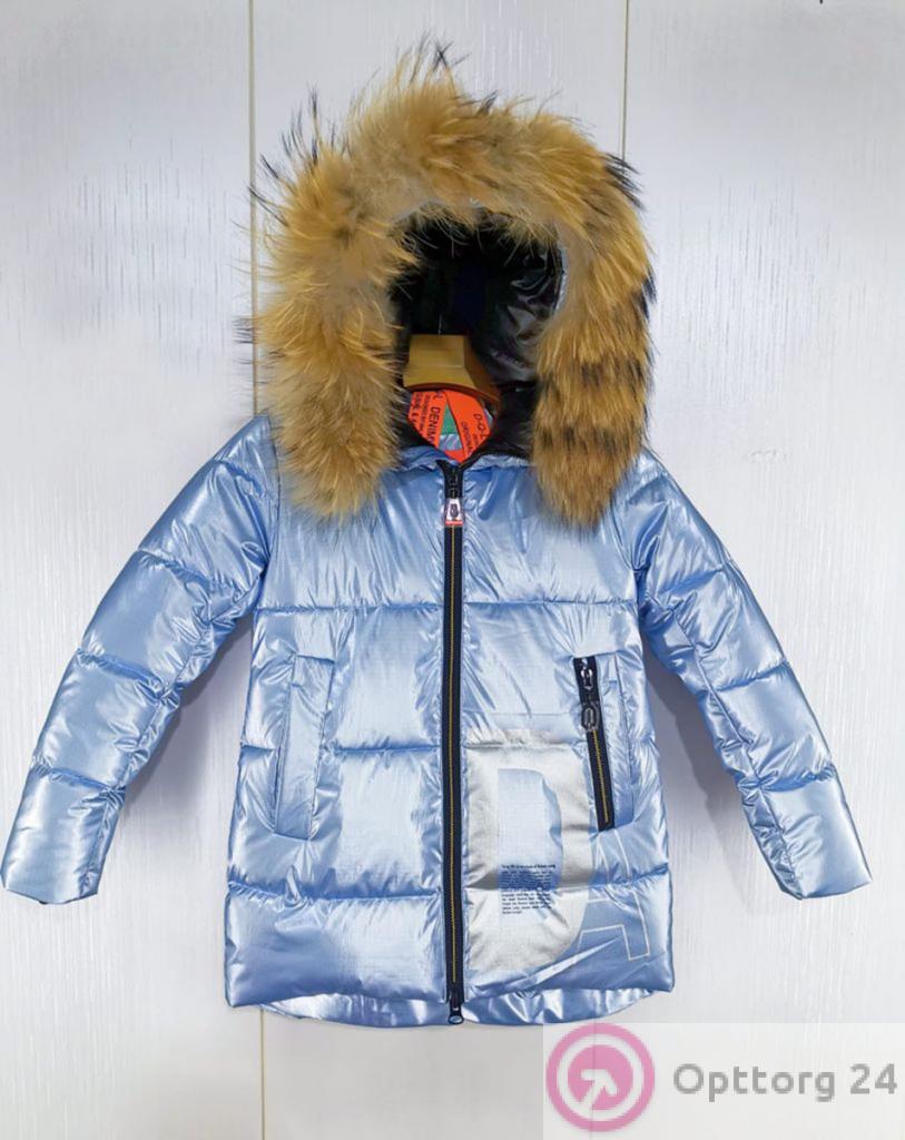 Куртка зимняя с натуральным мехом для девочки цвет голубой оптом