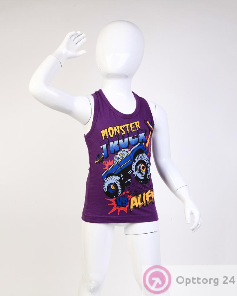 Майка-борцовка для мальчика фиолетовая "Автомобиль" оптом