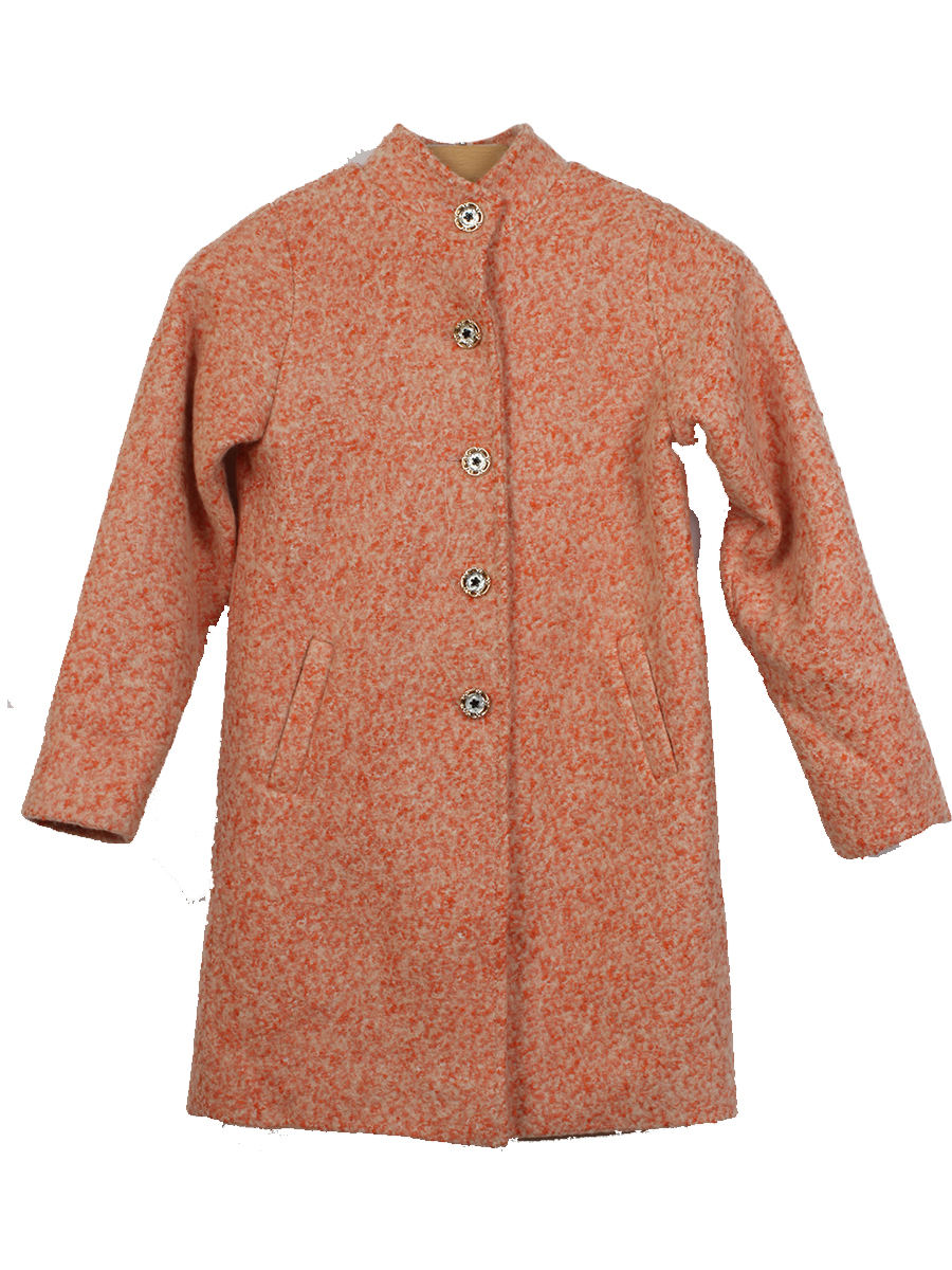 Пальто демисезонное из шерсти для девочки. Стиль классический. Персиковое в крапинку.