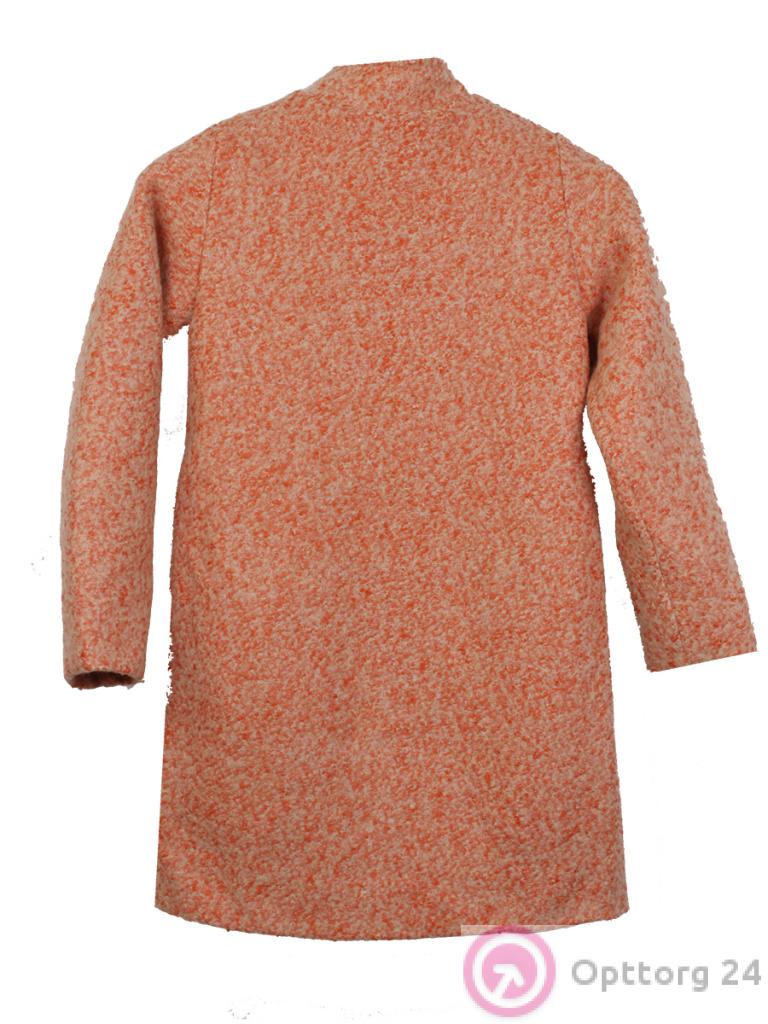 Пальто демисезонное из шерсти для девочки персиковое в крапинку оптом
