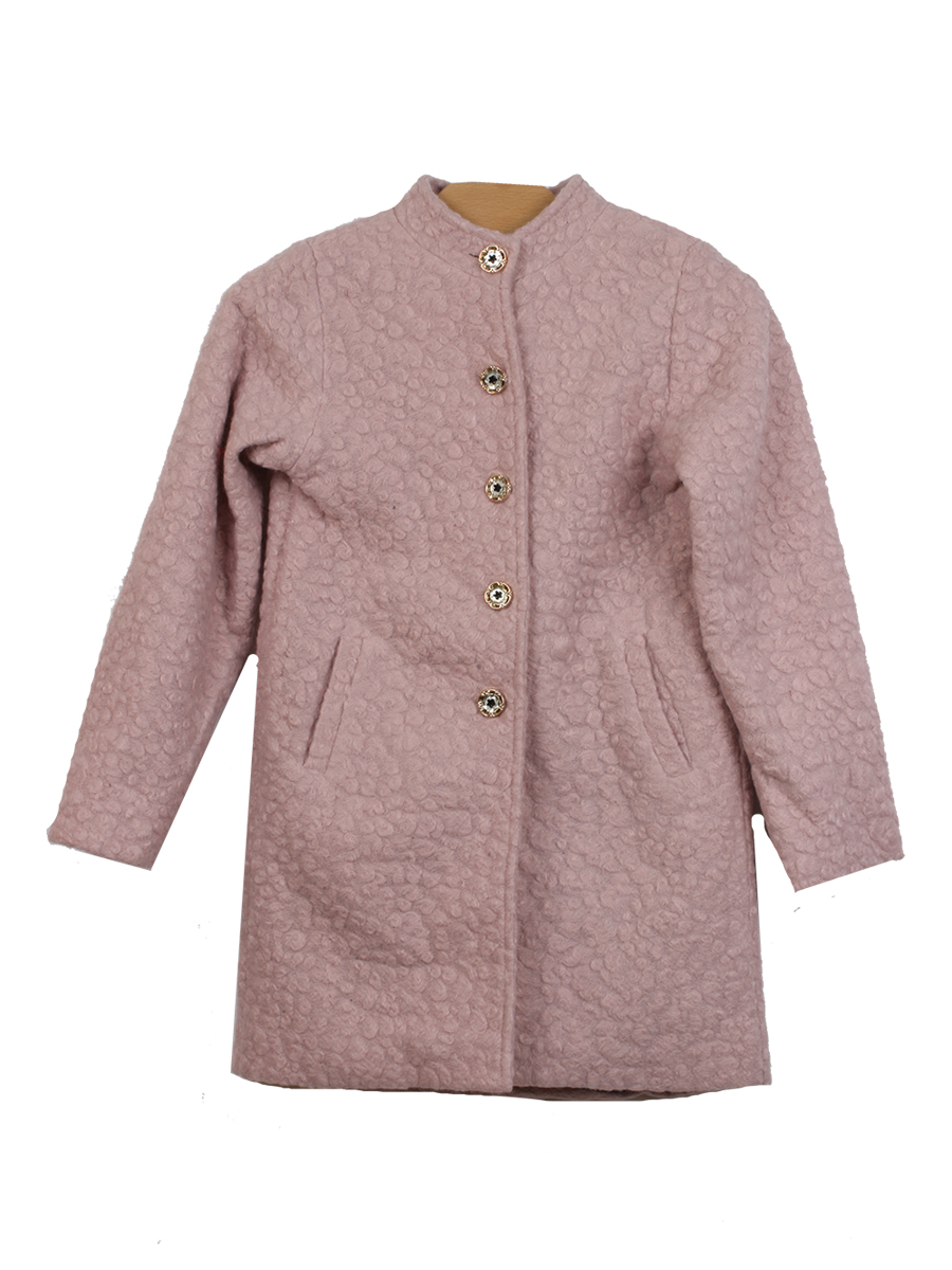 Пальто демисезонное из шерсти для девочки. Цвет пыльно-розовый. Пуговицы в форме цветка.