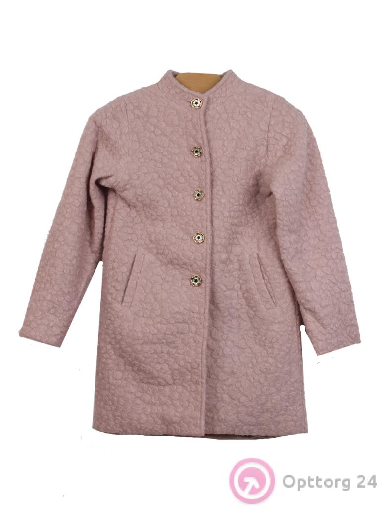 Пальто демисезонное из шерсти для девочки пыльно-розового цвета оптом