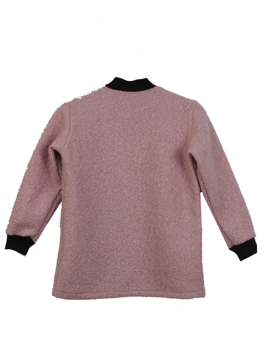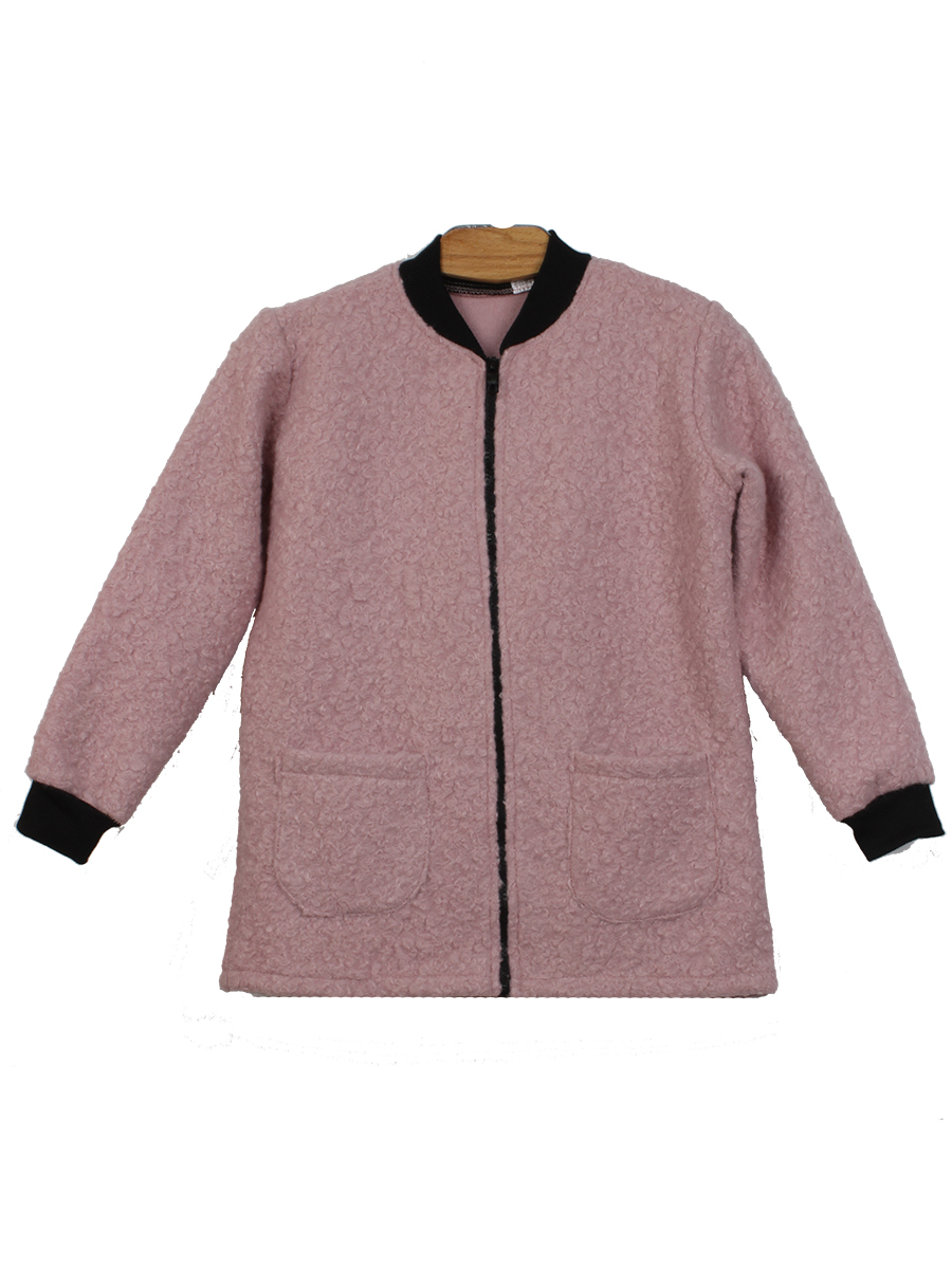 Пальто демисезонное из шерсти для девочки нежного розовая. Стиль современный. Рукав черный, есть карманы.