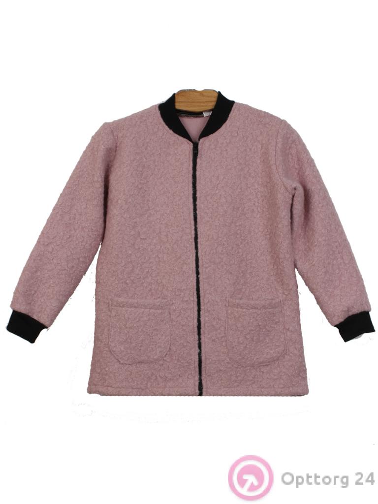 Пальто демисезонное из шерсти для девочки розового цвета оптом