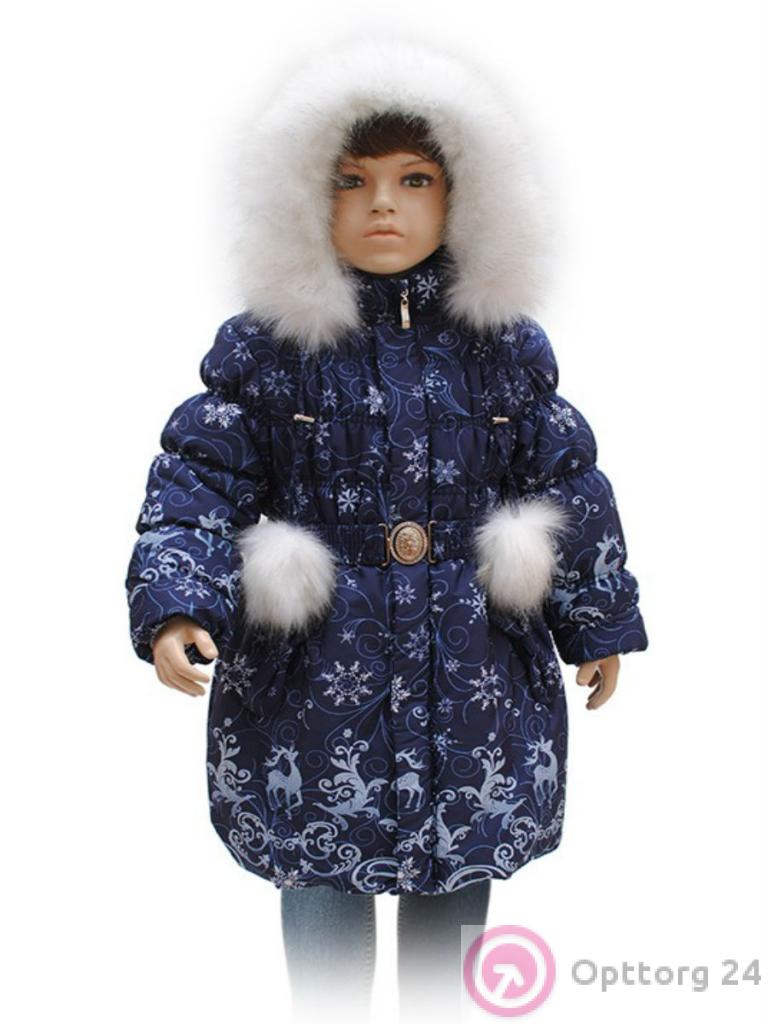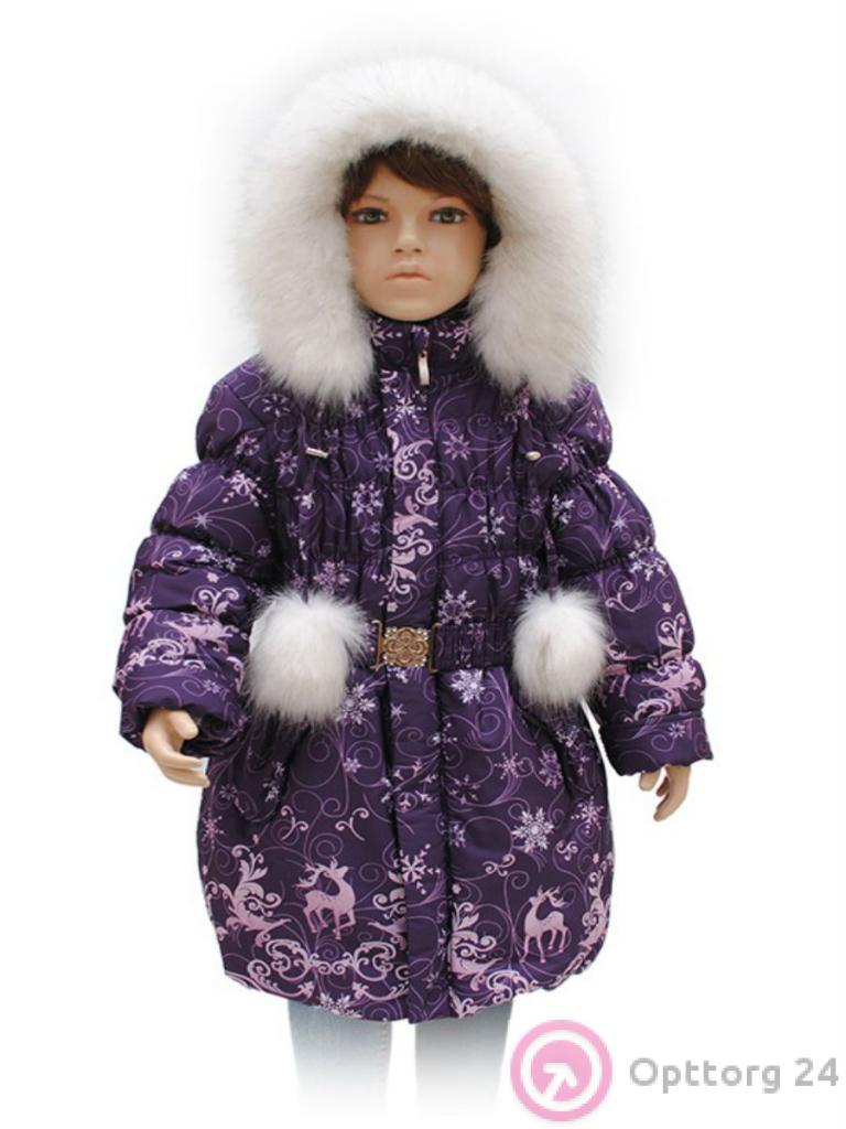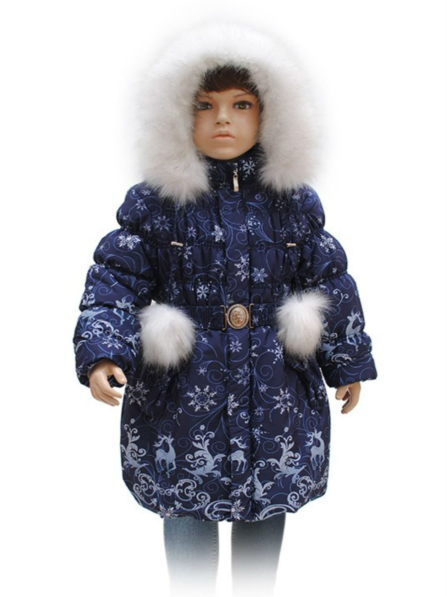 Пальто для девочки с поясом и капюшоном. Капюшон оснащен мехом. По центру-молния.