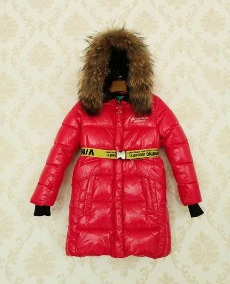 Пальто зимнее для девочки с натуральным мехом цвет красный оптом