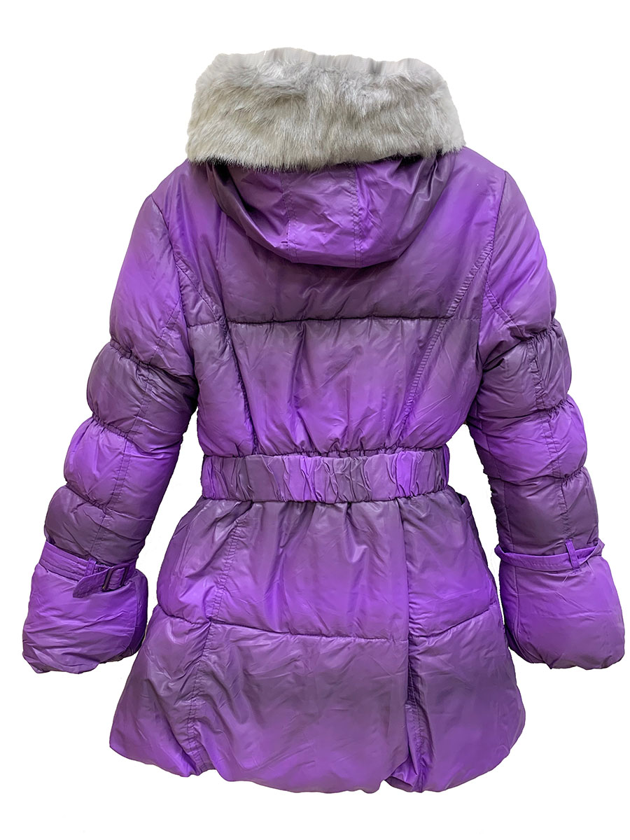 Описание: Великолепное зимнее пальто на синтепоне для девочки подростковое фиолетового цвета. На манжетах резинка, рукава декорированы ремешками, а также есть пояс с пряжкой. Отличное качество. Температурный режим до -25. На капюшоне искусственный мех. Застежка на молнии с ветрозащитной планкой на кнопках. Есть два кармана.