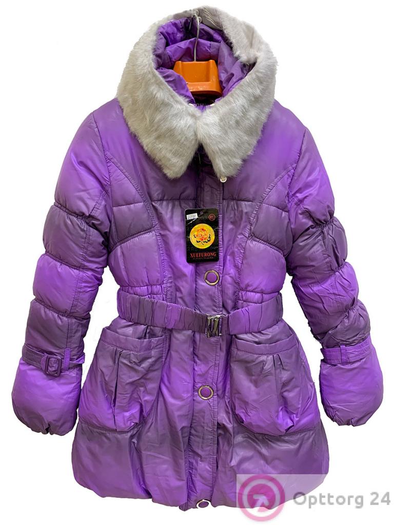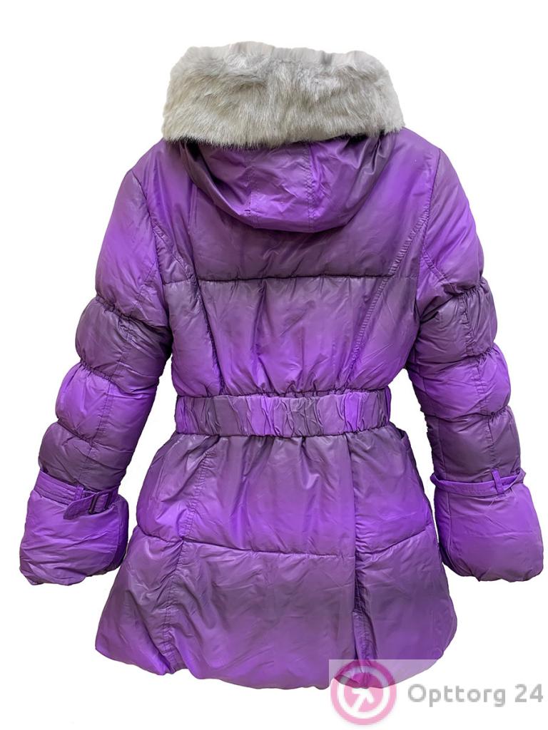 Пальто зимнее на синтепоне для девочки подростковое фиолетового цвета оптом
