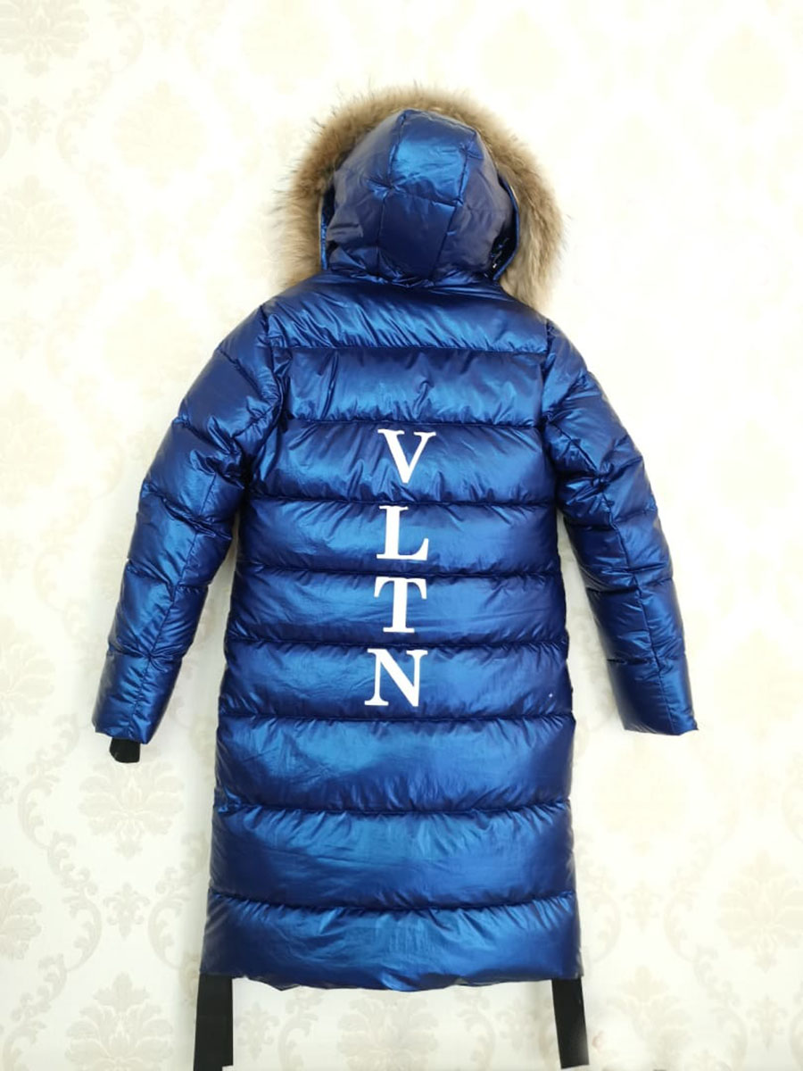 Описание: Пальто зимнее подростковое для девочки с натуральным мехом. Цвет темно-синий с отливом. Высокий воротник. Застегивается на молнии. Манжеты рукавов дополнительно на трикотажной резинке. Капюшон декорирован натуральным мехом. На спине большая надпись.