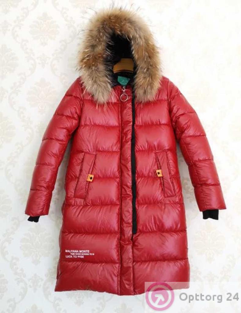 Пальто зимнее подростковое для девочки с натуральным мехом на капюшоне оптом