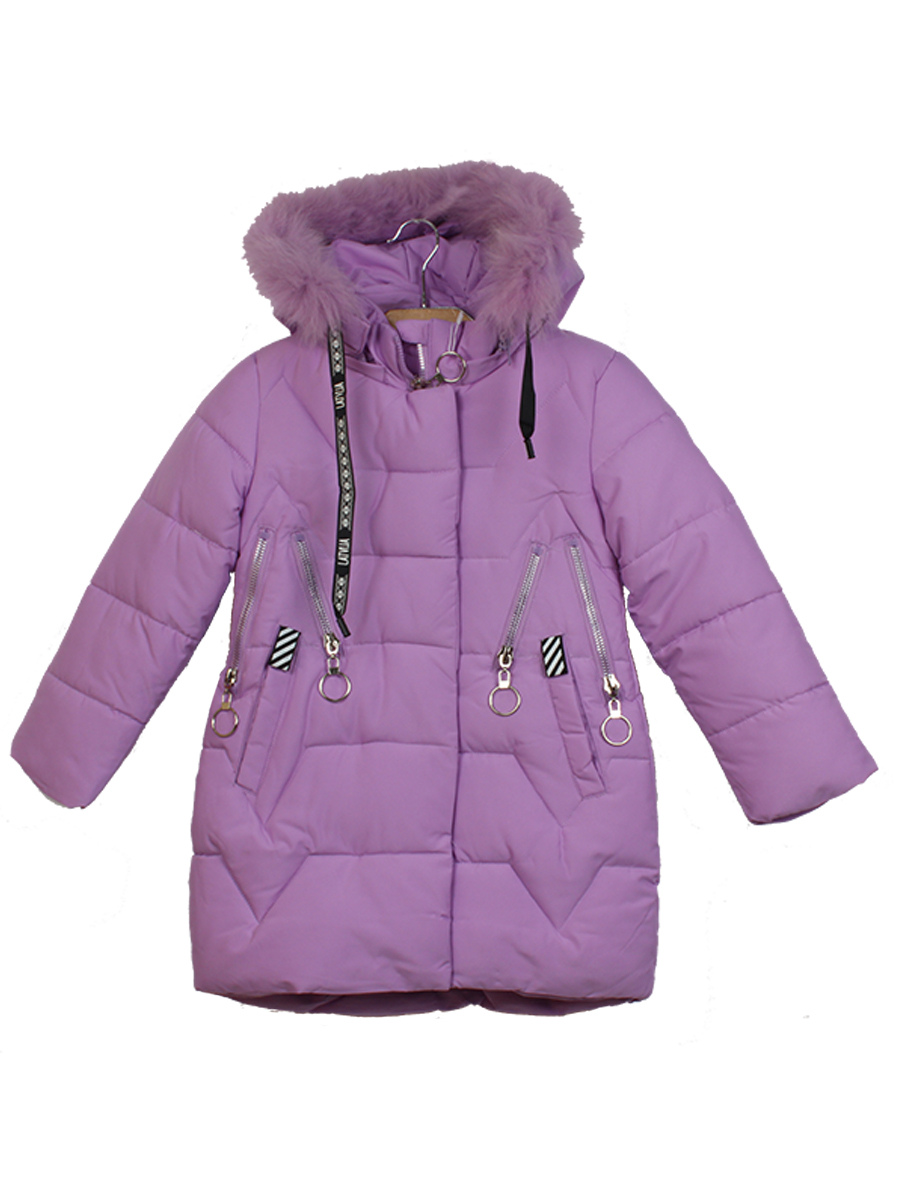 Парка - пуховик для девочки подростковый с натуральным мехом розового цвета. Есть капюшон и карманы.