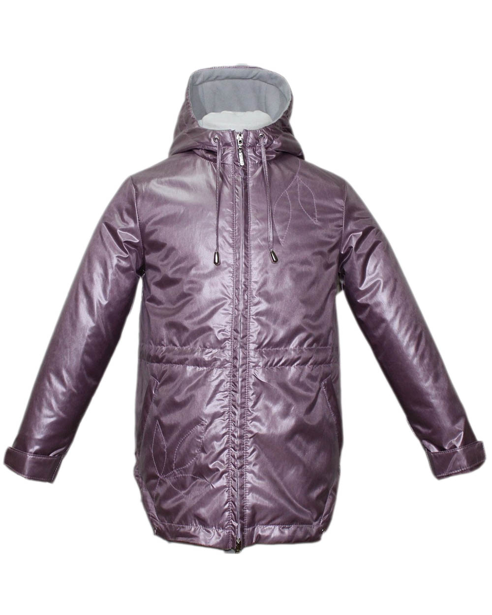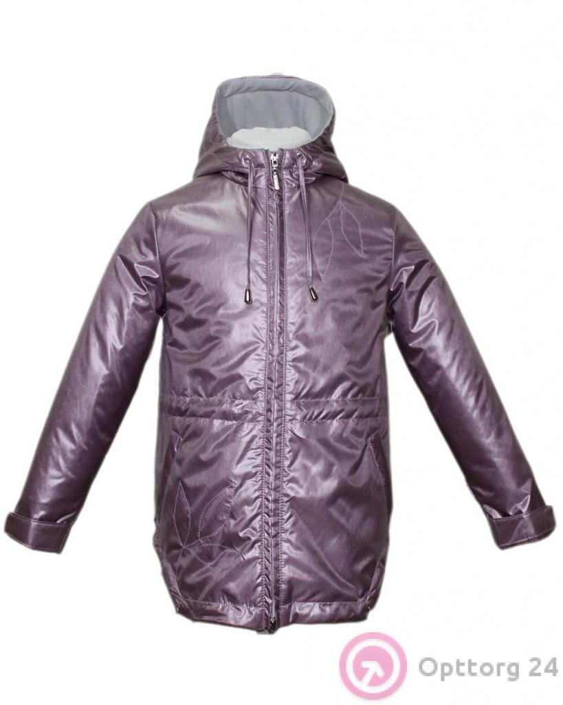Сиреневая парка с капюшоном. Модель на молнии. Карманы врезные на молнии. Капюшон имеет шнурки-утяжки.