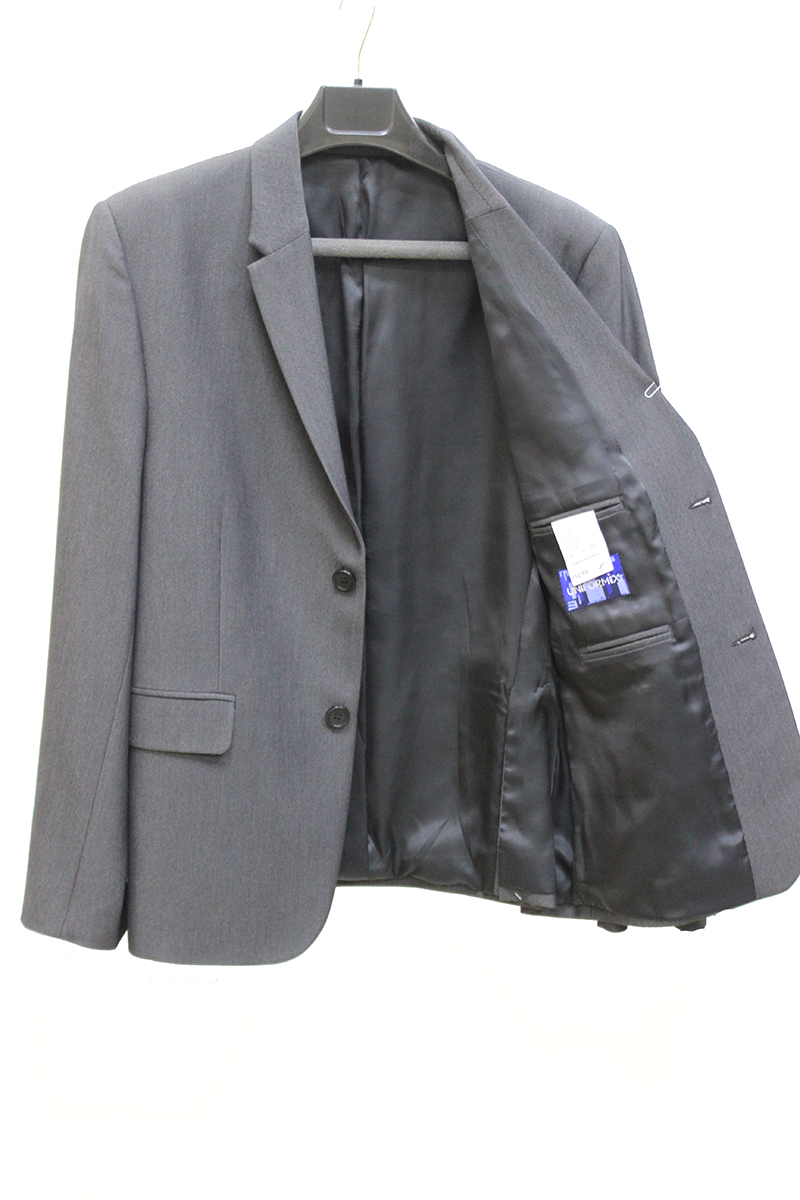 Описание: Классический пиджак для мальчика серого цвета, однотонный.