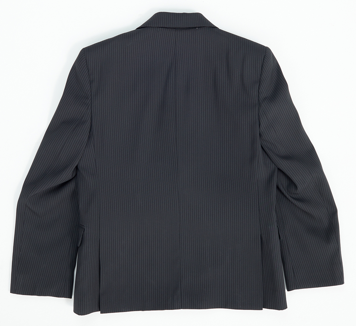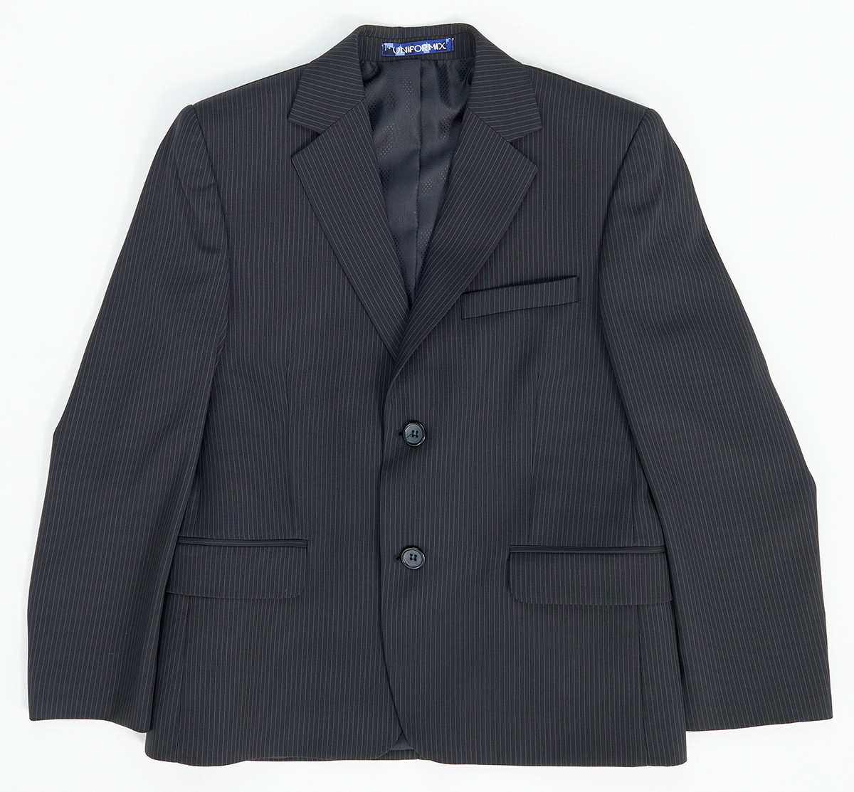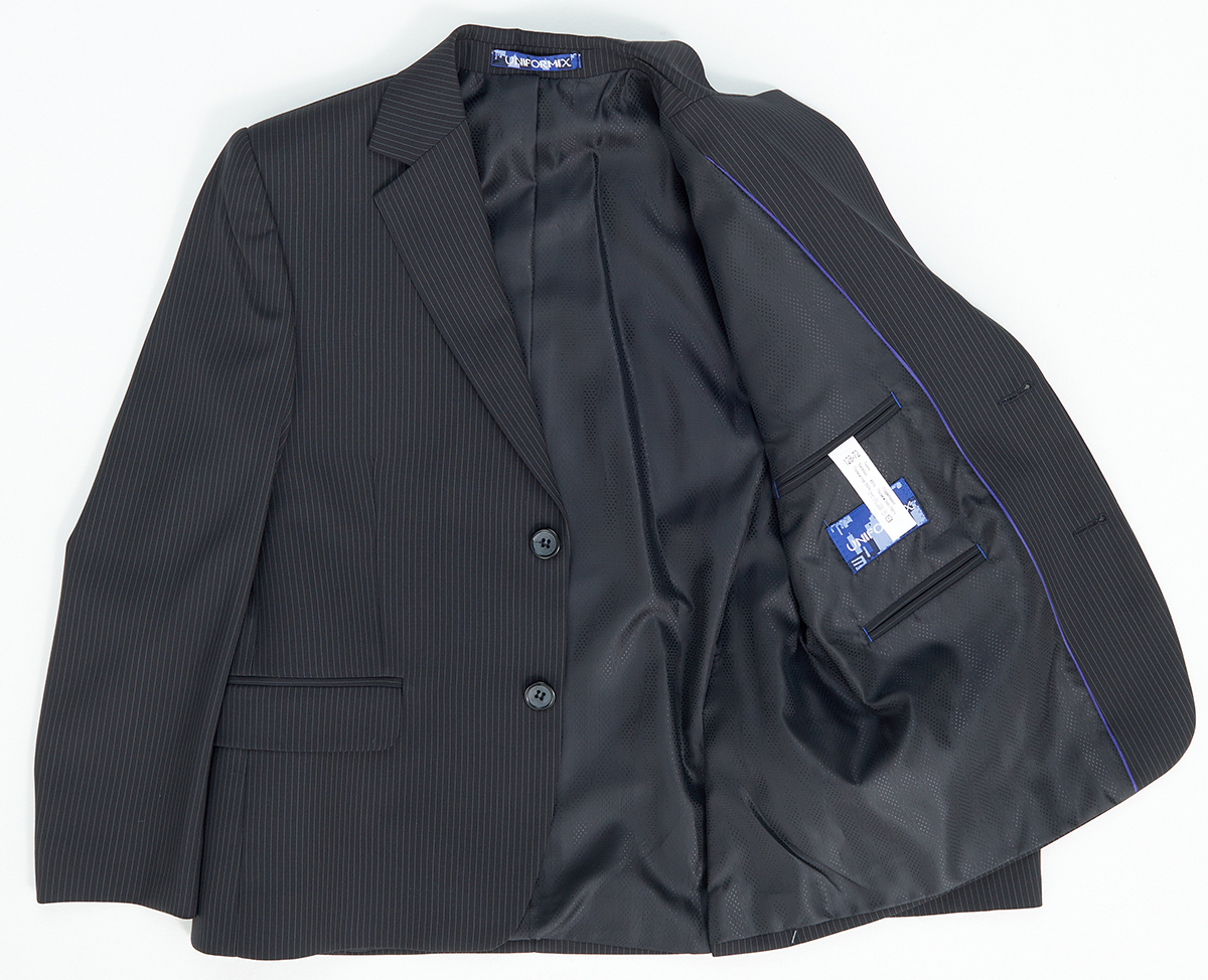 Описание: Пиджак школьный для мальчика, цвет черный в мелкую полосочку. Приталенный. Отложенный воротничок. Застегивается на две пуговицы. Есть три кармана и два кармана внутренних. Сзади два небольших разреза.