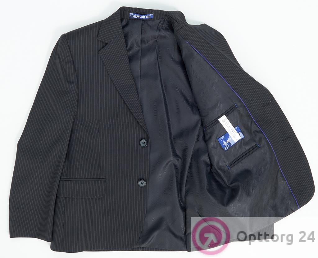 Пиджак школьный для мальчика цвет черный в мелкую полосочку оптом