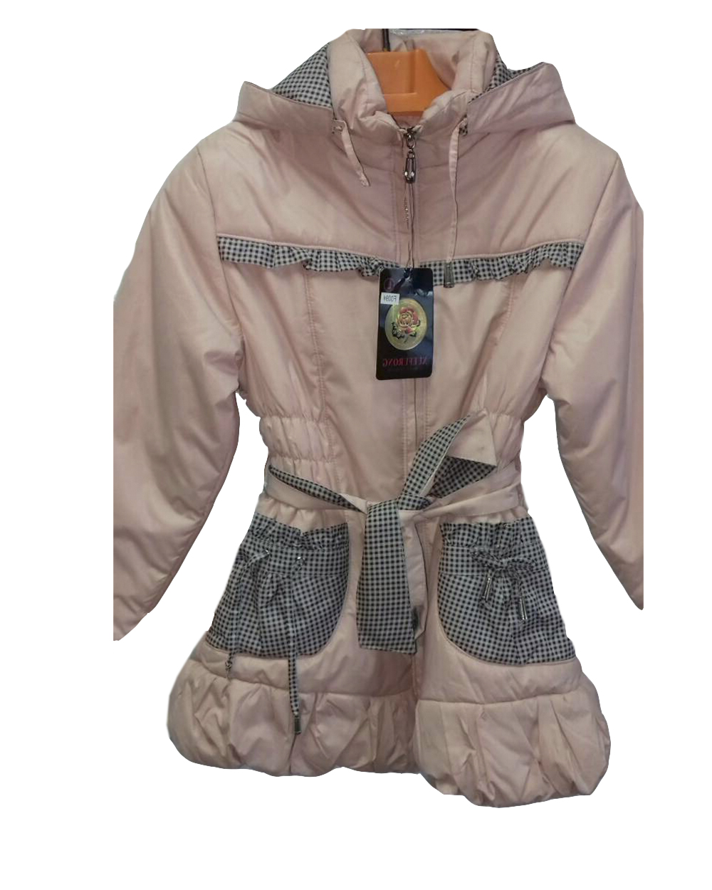 Бежевый плащ с рюшами на груди. Модель имеет приталенный силуэт и пояс в комплекте.