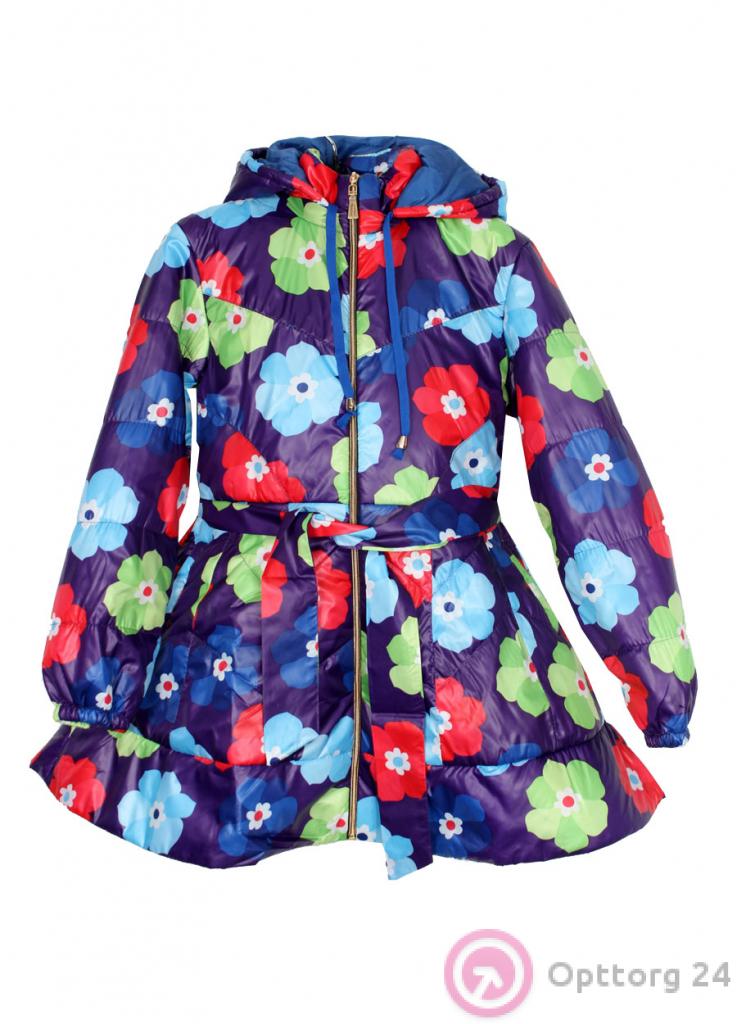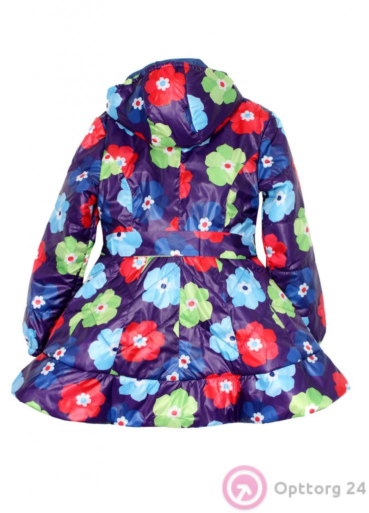 Плащ для девочки с подкладкой на синтепоне фиолетовый с цветами оптом
