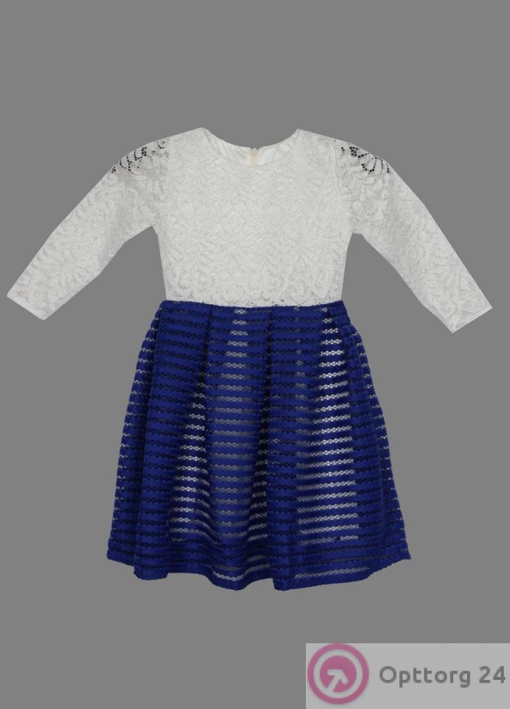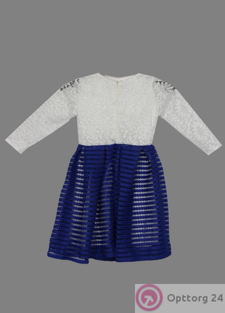 Детское платье с длинными рукавами бело-синего цвета. Изделие застегивается на молнию сзади