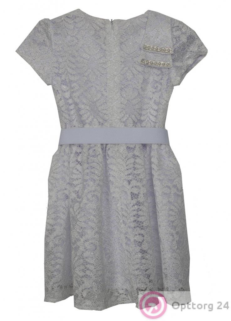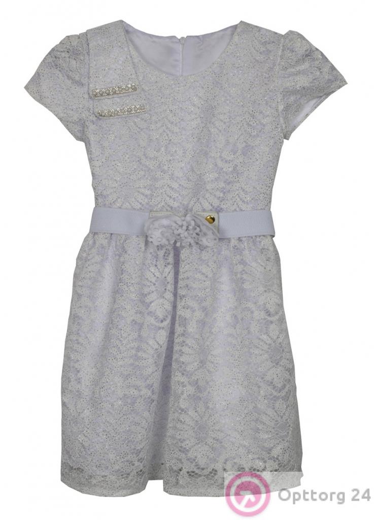 Шикарное детское платье белого цвета. Имеет узор, украшение на плече и пояс с бантом
