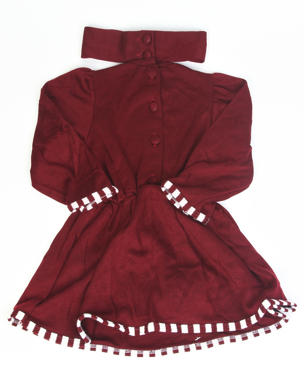 Платье бордовое с белой отделкой;