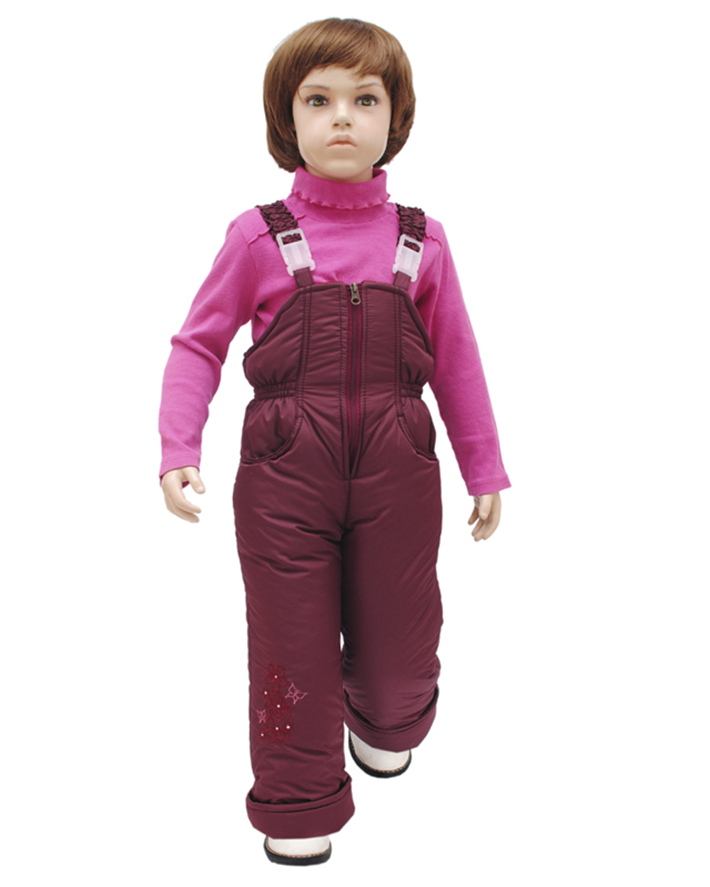 Мягкий удобный и теплый полукомбинезон для девочек. В модели предусмотрены напульсники. Бретели регулируются по длине.