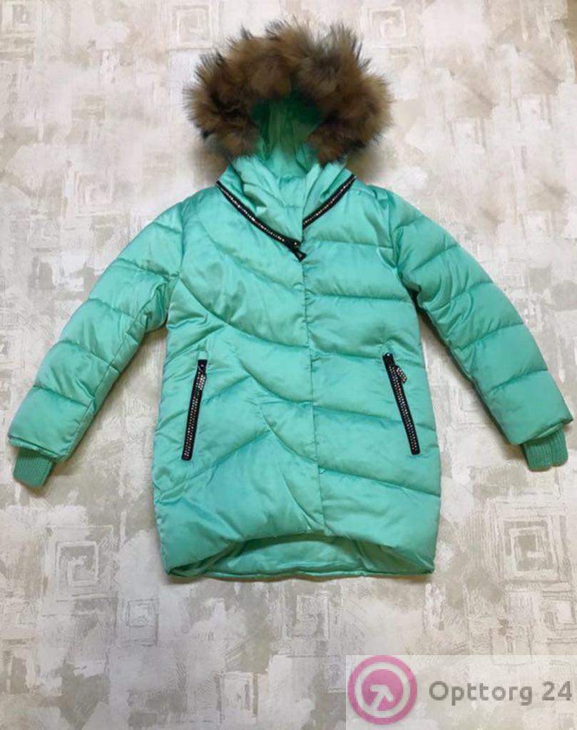 Пуховик детский для девочки цвет бирюзовый оптом