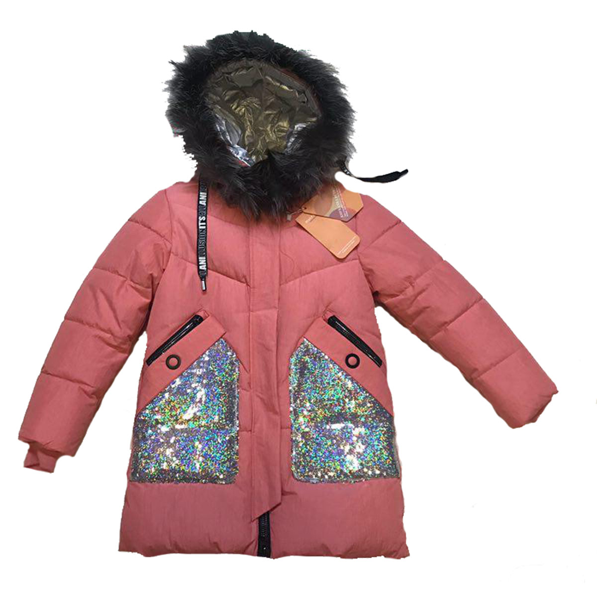 Описание: Пуховик детский для девочки кораллового цвета с блестящими вставками. Капюшон декорирован натуральным мехом. Застежка на молнии с ветрозащитной планкой. Есть два кармана на молнии.