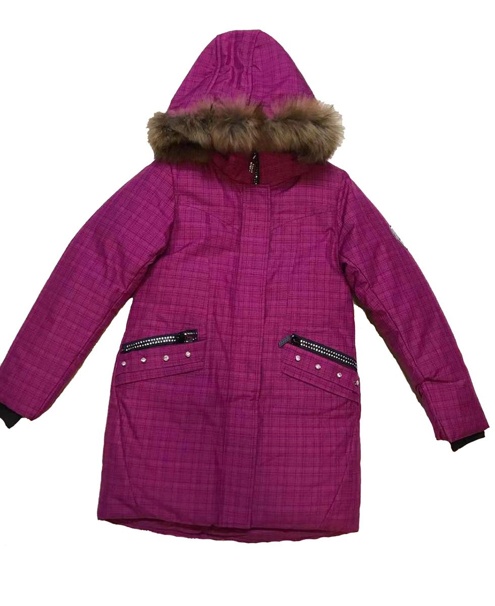 Описание: Пуховик детский для девочки малинового цвета декорирован искусственными камнями. Капюшон декорирован натуральным мехом. Застежка на молнии с ветрозащитной планкой. Есть два кармана на молнии. Манжеты с трикотажной резинкой.