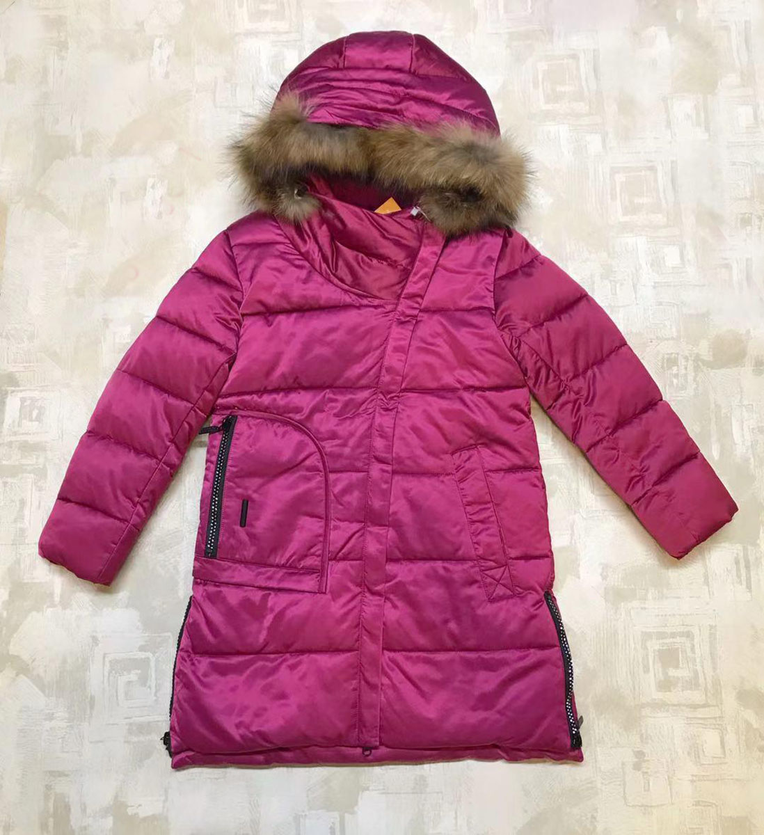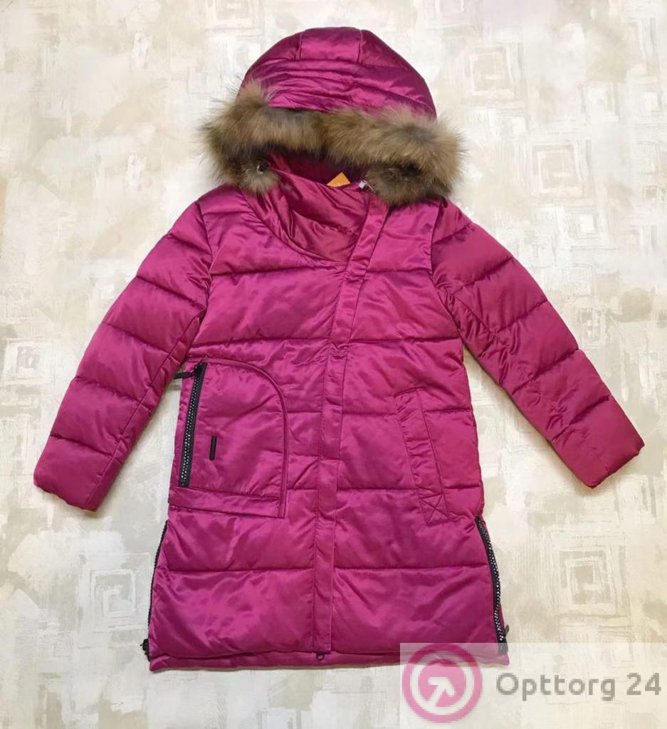 Описание: Пуховик детский для девочки малинового цвета по бокам декорирован молниями.