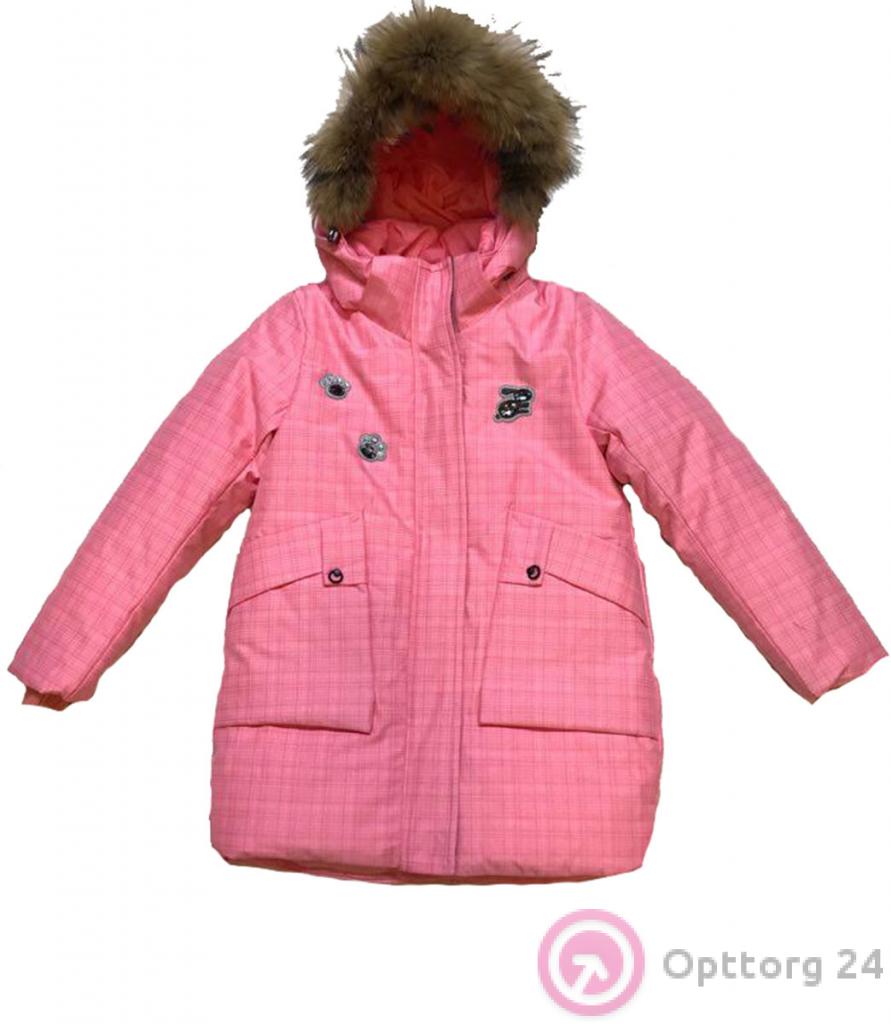 Пуховик детский для девочки с накладными карманами оптом
