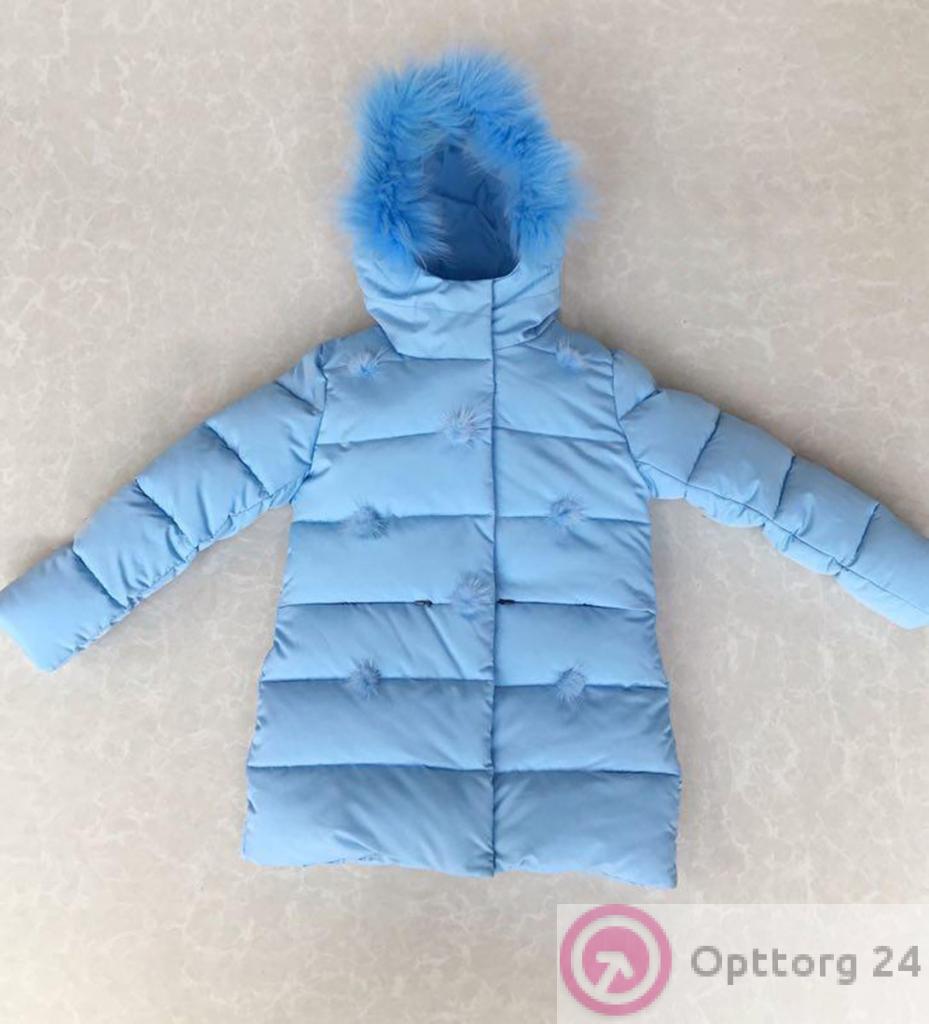 Пуховик детский для девочки с помпончиками оптом