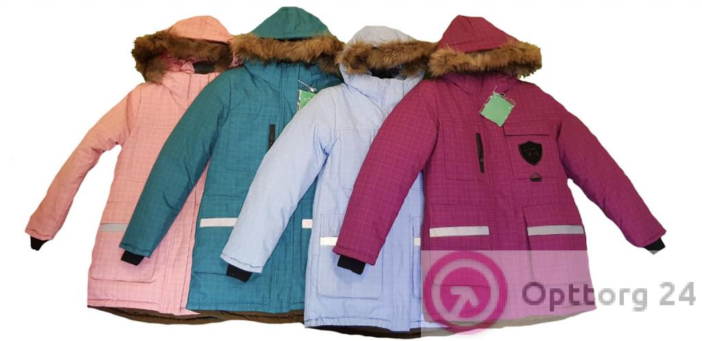Пуховик детский для девочки со светоотражающими элементами оптом