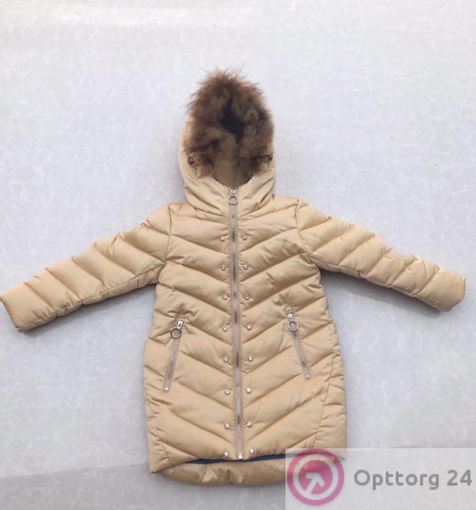 Пуховик детский для девочки выполнен в золотых тонах оптом