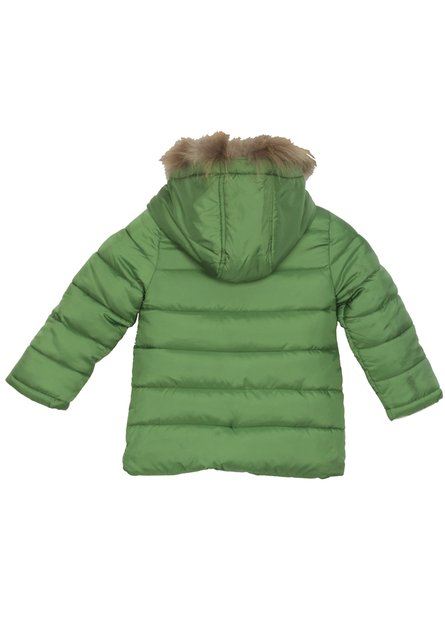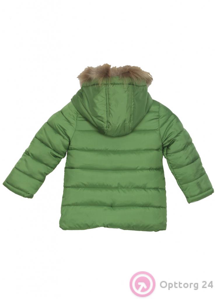 Пуховик детский на двойном синтепоне с искусственным мехом зеленый оптом