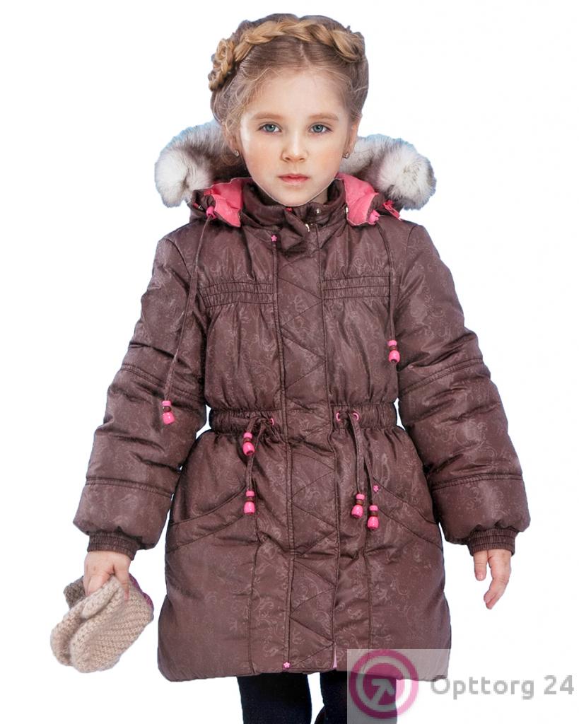 Пуховик детсякий зимний коричневый с розовым декором оптом