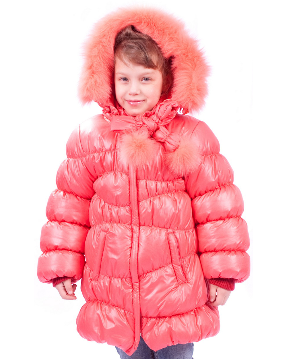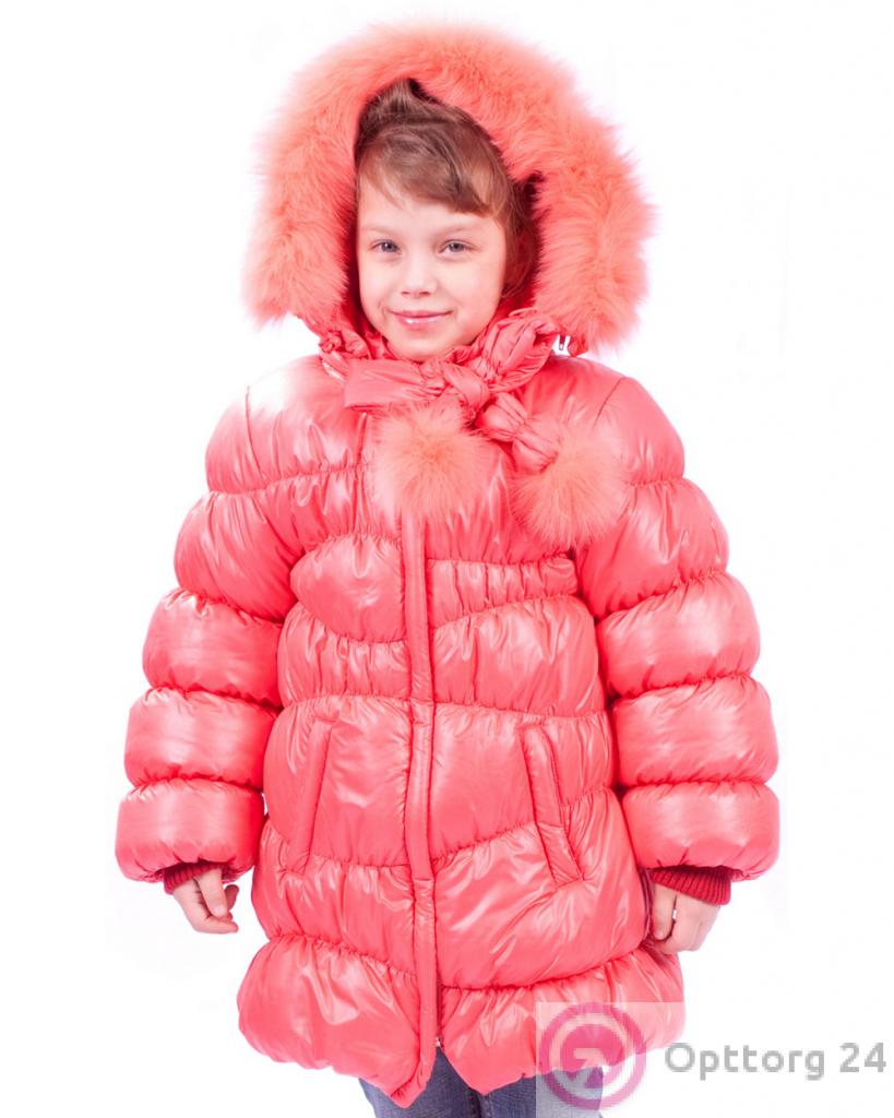 Пуховик для девочки нежно-розового цвета с помпонами оптом