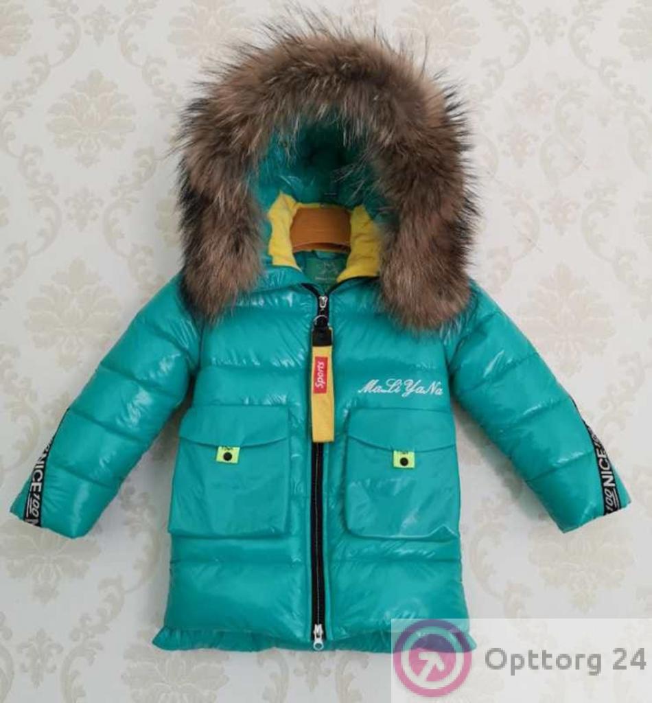 Пуховик для девочки с натуральным мехом цвет бирюзовый оптом