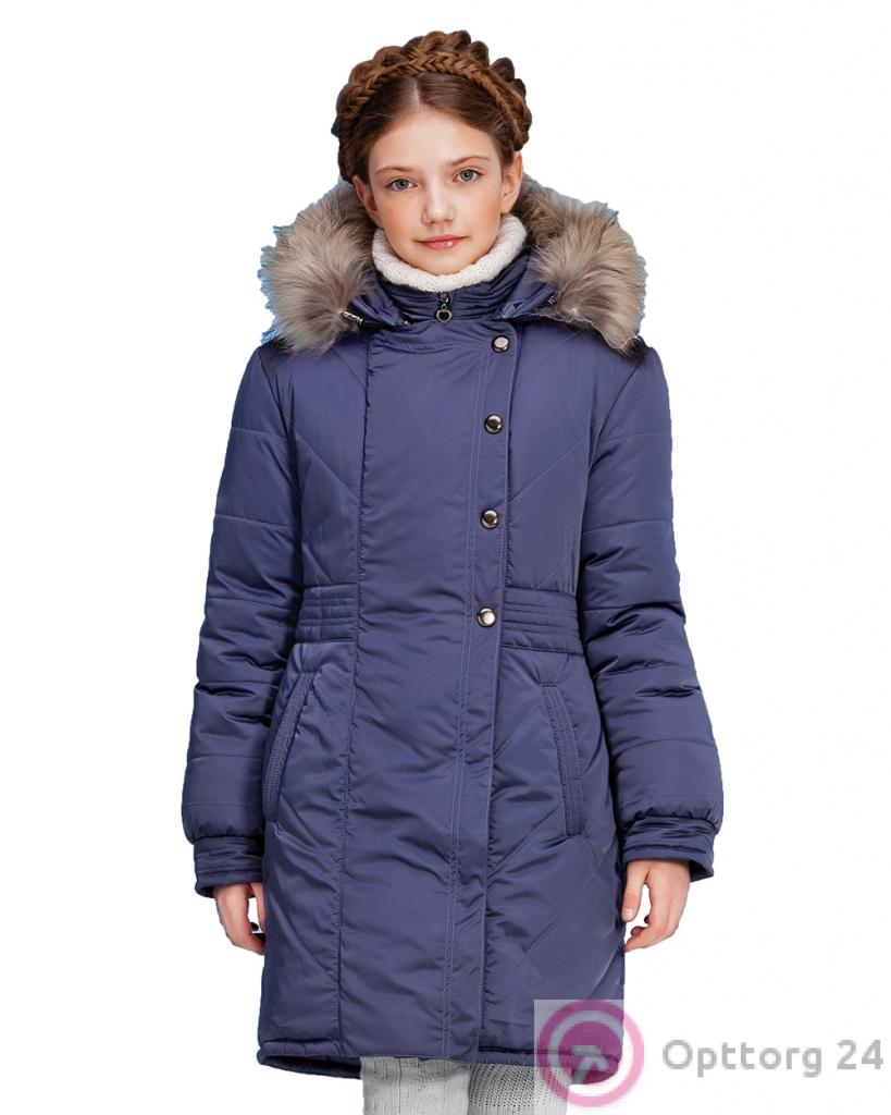 Пуховик для девочки темно-синий с меховой опушкой оптом
