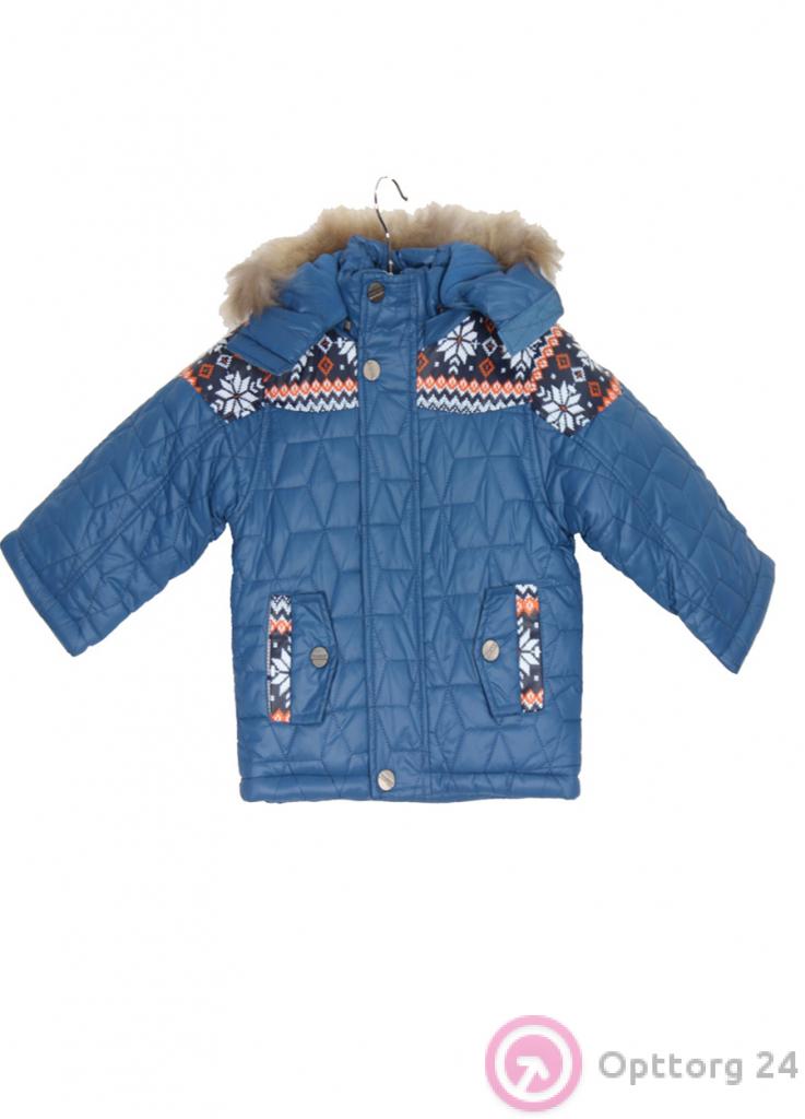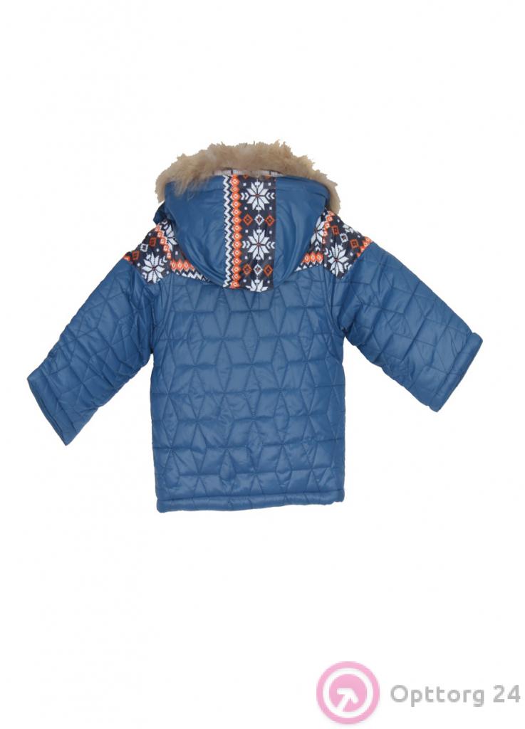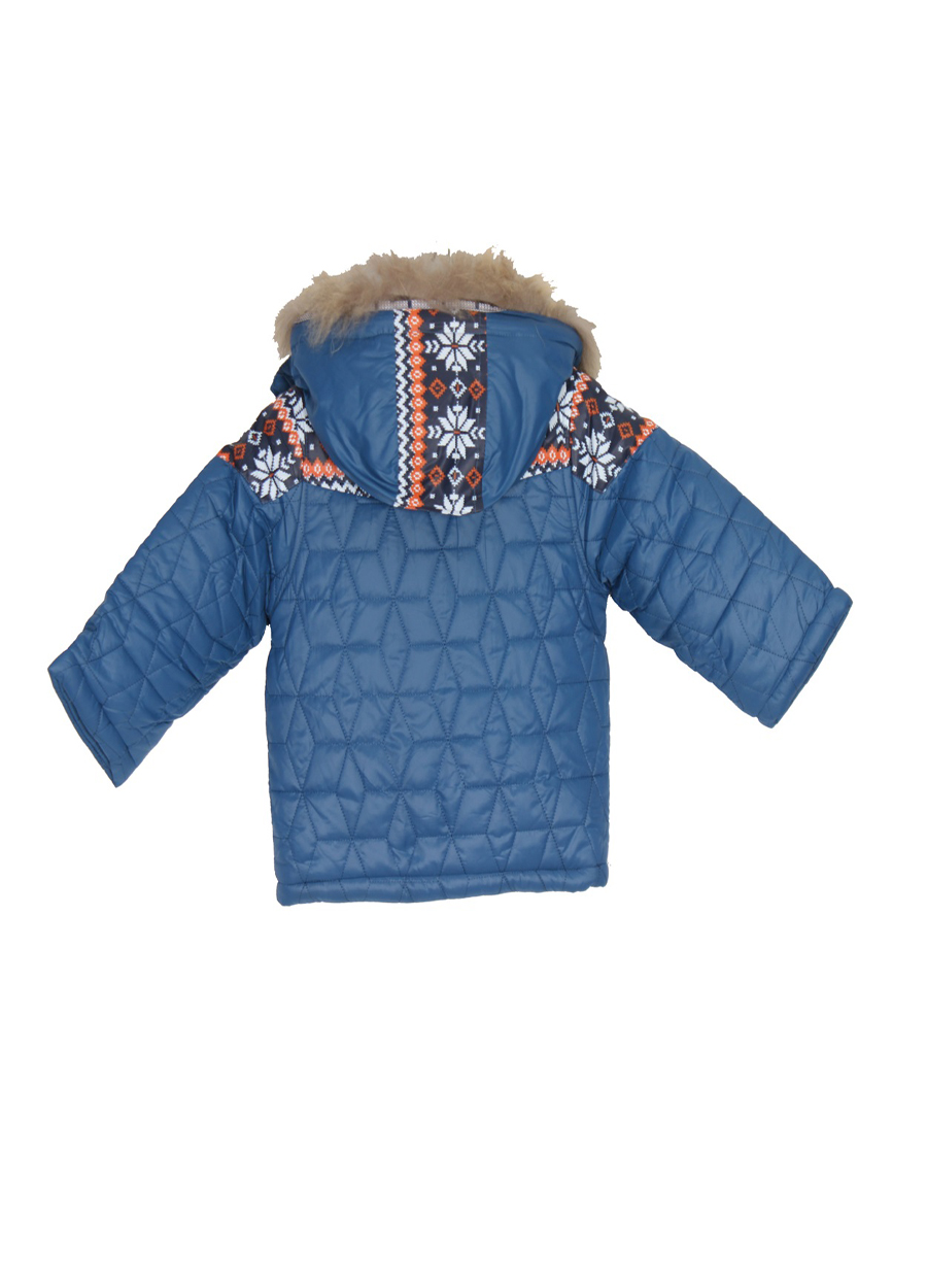 Удобный пуховик голубого цвета. Очень теплый и качественный, украшен узорами, имеет капюшон и застежку-молнию