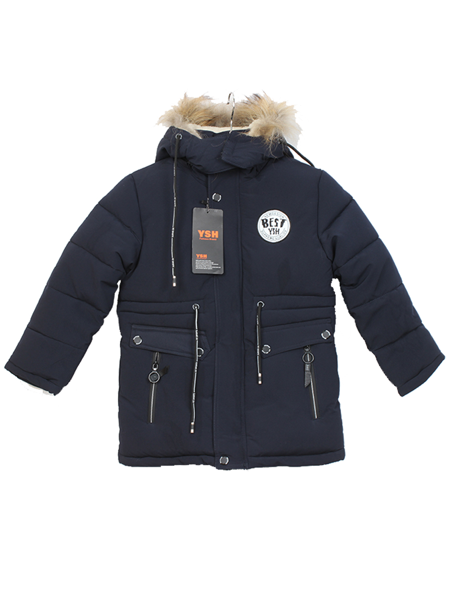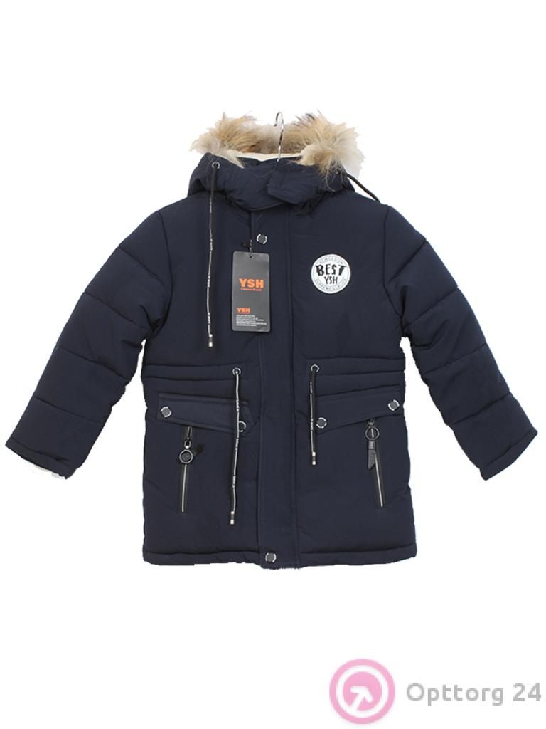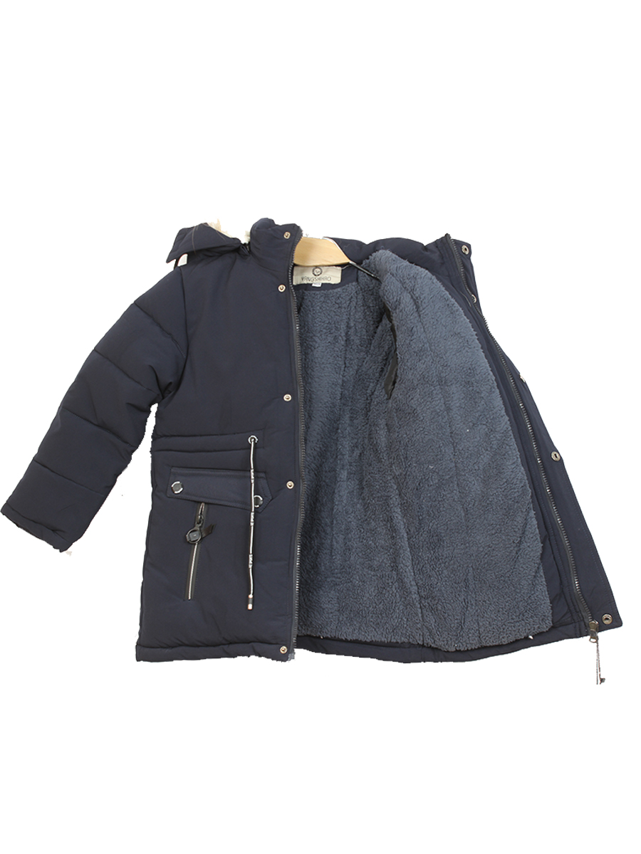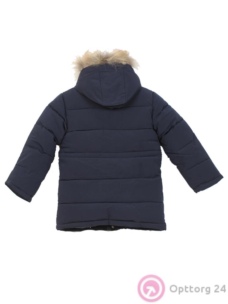 Пуховик для мальчика с подкладом зимний с натуральным мехом темно-синий оптом