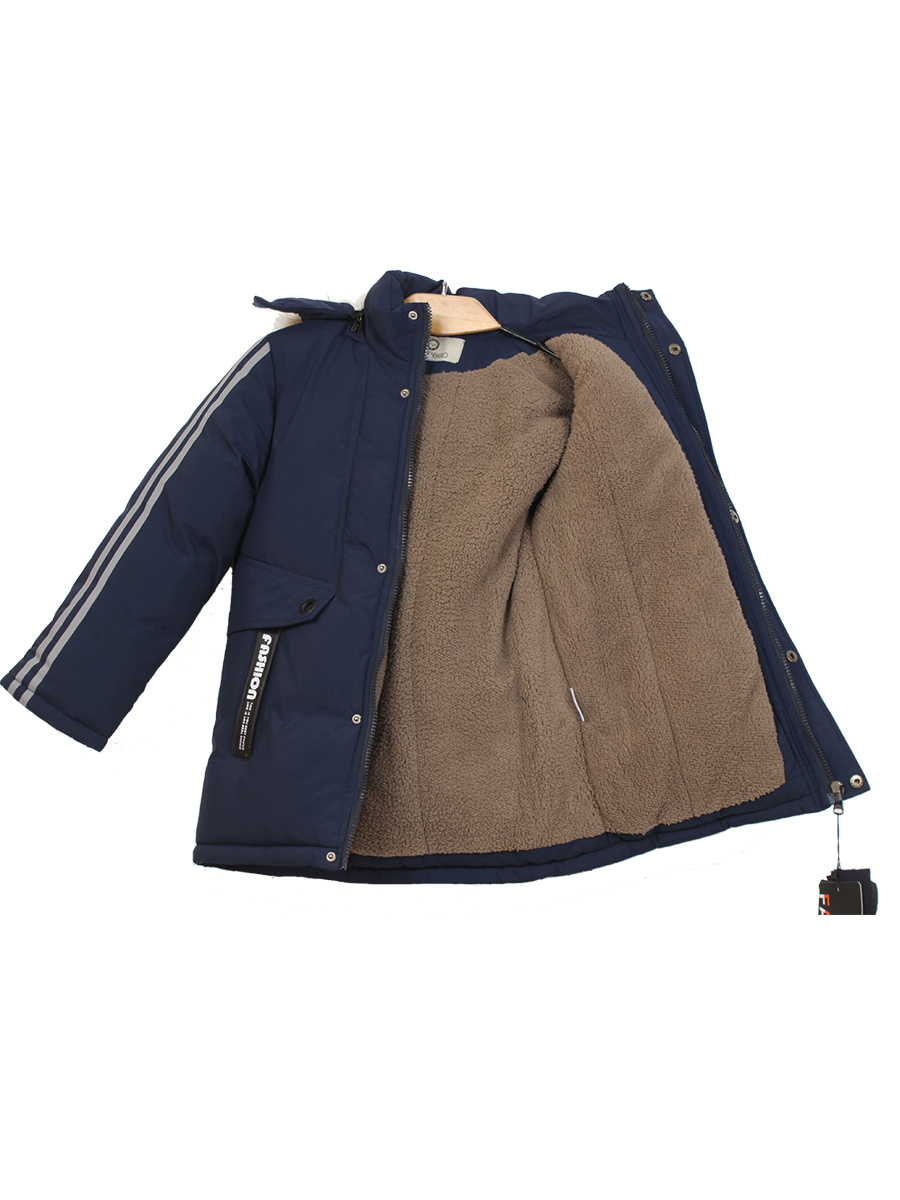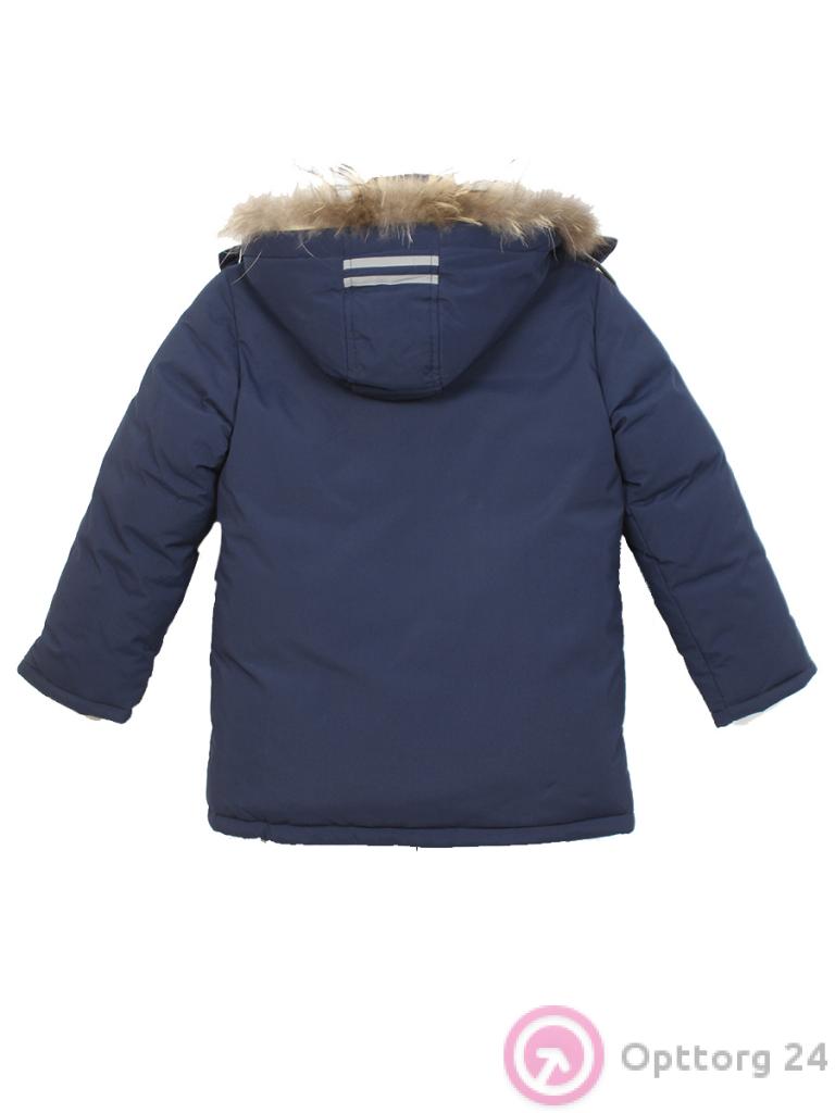 Пуховик для мальчика с подкладом зимний с натуральным мехом темно-синий с серыми полосками оптом